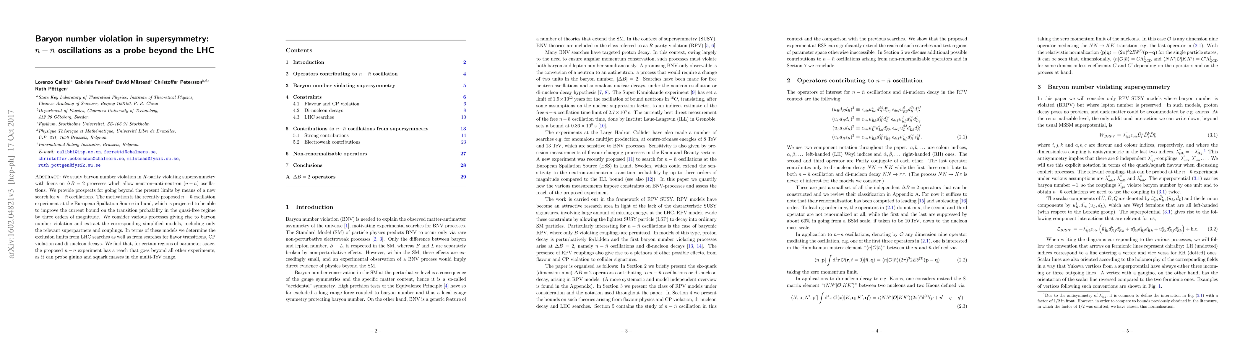 This paper explores baryon number violation in supersymmetry through neutron-antineutron oscillations, proposing a new experiment at the European Spallation Source to significantly enhance current limits. It finds that this experiment could surpass LHC and other searches in probing high-mass gluinos and squarks, extending the reach of supersymmetry beyond current experimental capabilities.