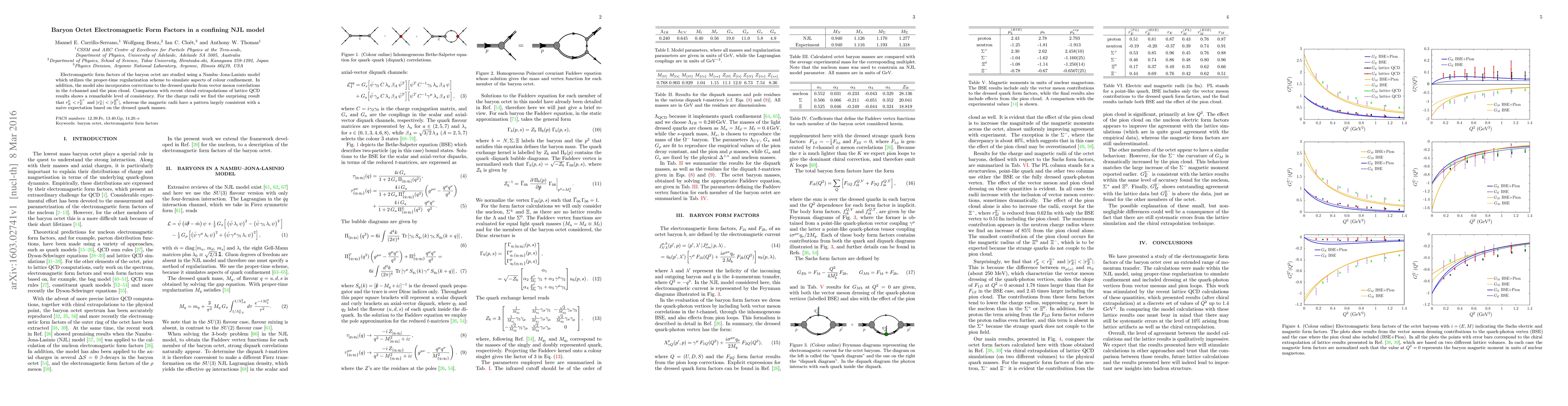 This paper investigates the electromagnetic form factors of baryon octet using a Nambu-Jona-Lasinio model with proper-time regularization, revealing surprising results for charge radii and consistent magnetic radii patterns. Comparisons with lattice QCD show high consistency.