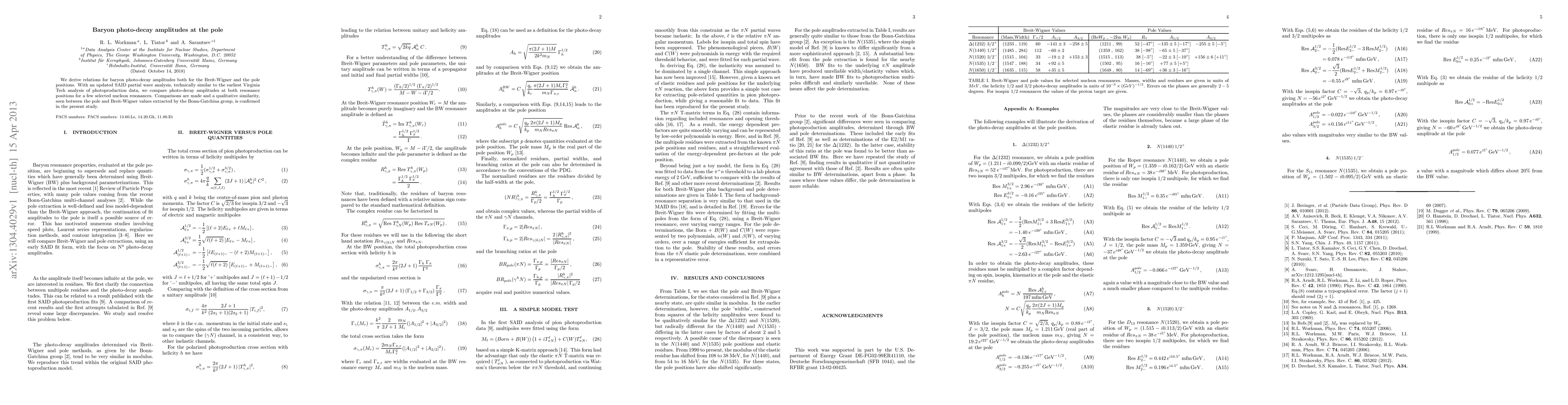 We derive relations for baryon photo-decay amplitudes both for the Breit-Wigner and the pole positions. With an updated SAID partial wave analysis, technically similar to the earliest Virginia Tech analysis of photoproduction data, we compare photo-decay amplitudes at both resonance positions for a few selected nucleon resonances. Comparisons are made and a qualitative similarity, seen between the pole and Breit-Wigner values extracted by the Bonn-Gatchina group, is confirmed in the present study.