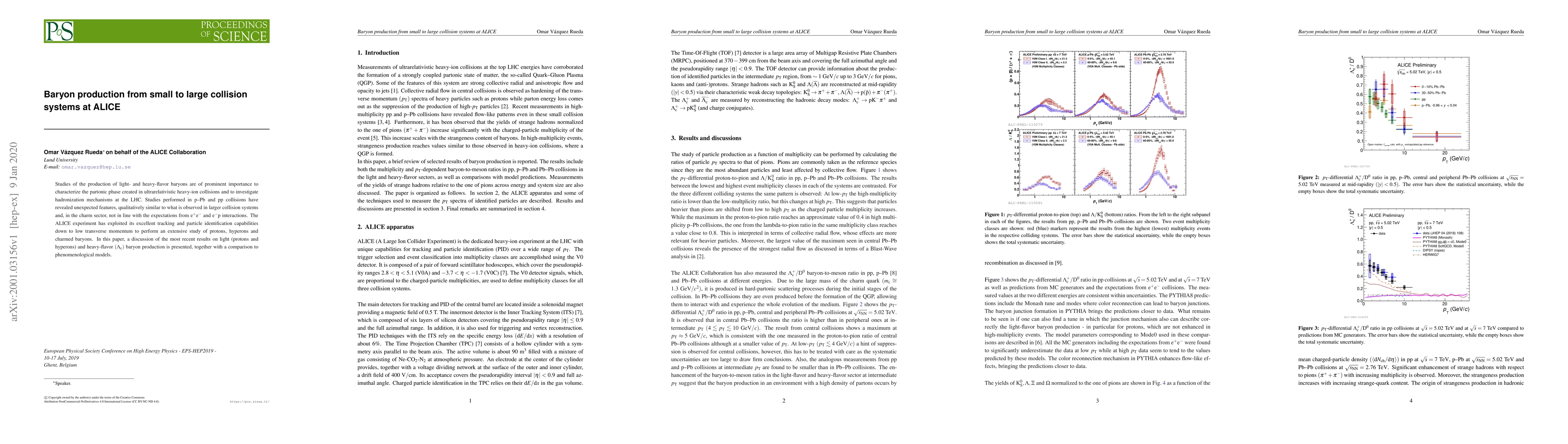 This paper discusses the production of light and heavy-flavor baryons in various collision systems studied by the ALICE experiment at the LHC, revealing unexpected features in p-Pb and pp collisions that challenge conventional expectations from e+e− and e−p interactions. The results provide insights into the partonic phase and hadronization mechanisms.