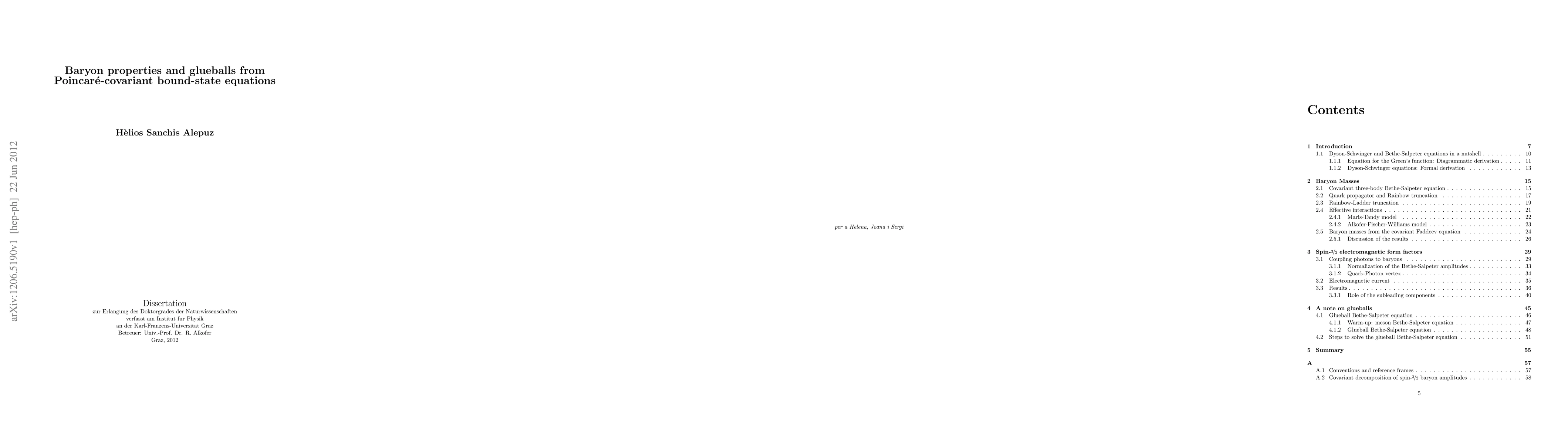In this thesis the covariant Bethe-Salpeter equation formalism is used to study some properties of ground-state baryons. This formalism relies on the knowledge of the interaction kernel among quarks and of the full quark propagator. For the interaction kernel, which is in principle a sum of infinitely many diagrams, I use the Ladder truncation. It amounts to reduce the interaction to a flavor-blind quark-mass independent vector-vector interaction between two quarks, mediated by a dressed gluon. The irreducible three-body interactions are neglected. The full quark propagator is obtained as a solution of the quark Dyson-Schwinger equation which is truncated such that, together with the truncation in the interaction kernel, chiral symmetry is correctly implemented. It is called Rainbow truncation, and together with the truncated kernel equation it constitutes the Rainbow-Ladder truncation of the Bethe-Salpeter equation. Any truncation induces the introduction of a model to account for the properties of the full system. The main goal of this thesis is to evaluate the model dependence of corrsponding results and, as a consequence, to isolate the features related to the truncation itself. To this end two non-related models are used to calculate the baryon spectra, from light to heavy quarks, and the electromagnetic properties of the Delta(1232). From these results one concludes a qualitative model independence, and that a Rainbow-Ladder truncated bound-state calculation reproduces the physical results with an accuracy of ~10%. Covariant bound-state equations are not limited to the study of hadronic bound states. As an example, in a further chapter of this thesis a Bethe-Salpeter equation for glueballs is proposed, and the main steps for a consistent resolution of the equation are described. However, to obtain this solution is beyond the scope of this work.