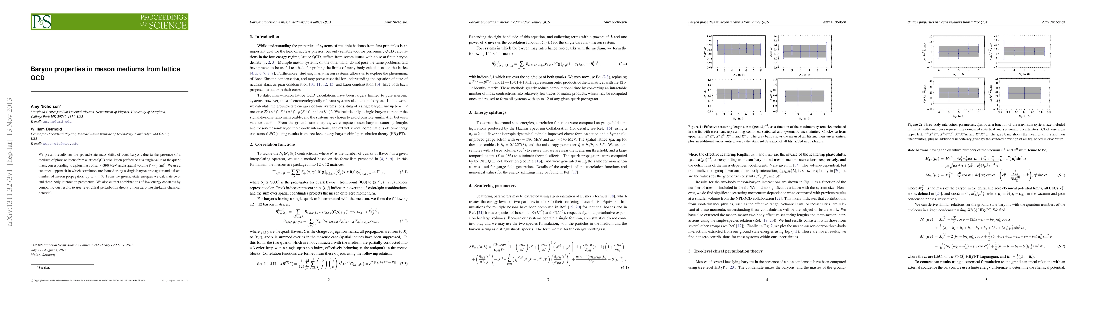 We present results for the ground-state mass shifts of octet baryons due to the presence of a medium of pions or kaons from a lattice QCD calculation performed at a single value of the quark mass, corresponding to a pion mass of $m_\pi$ ~ 390 MeV, and a spatial volume V ~ (4fm)^3. We use a canonical approach in which correlators are formed using a single baryon propagator and a fixed number of meson propagators, up to n=9. From the ground-state energies we calculate two- and three-body interaction parameters. We also extract combinations of low-energy constants by comparing our results to tree level chiral perturbation theory at non-zero isospin/kaon chemical potential.