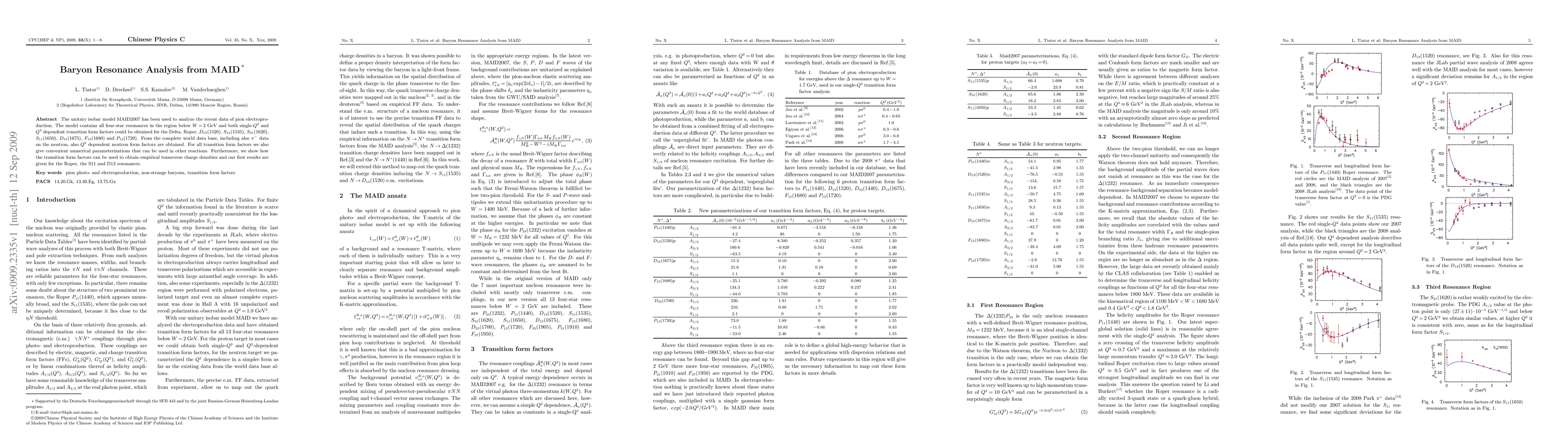 The MAID2007 model analyzes pion electroproduction data to identify and parameterize four-star baryon resonances below W=2 GeV, providing Q^2 dependent transition form factors and neutron form factors. The study also derives empirical transverse charge densities for the Roper, S11, and D13 resonances.