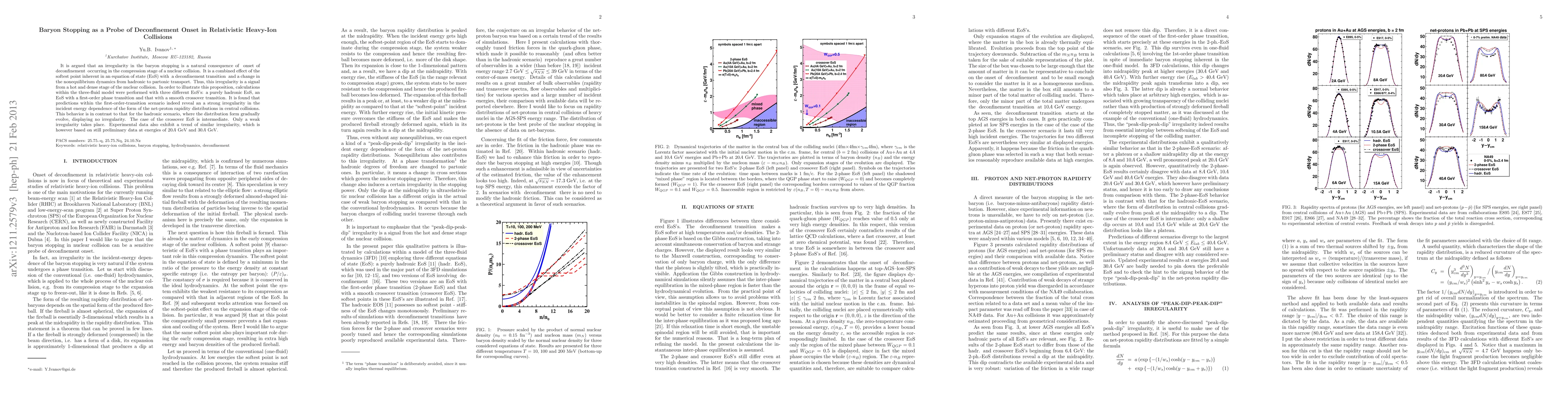 Researchers found that an irregularity in baryon stopping is a sign of deconfinement onset in relativistic heavy-ion collisions, with calculations revealing stronger irregularities for a first-order phase transition compared to hadronic or crossover scenarios.