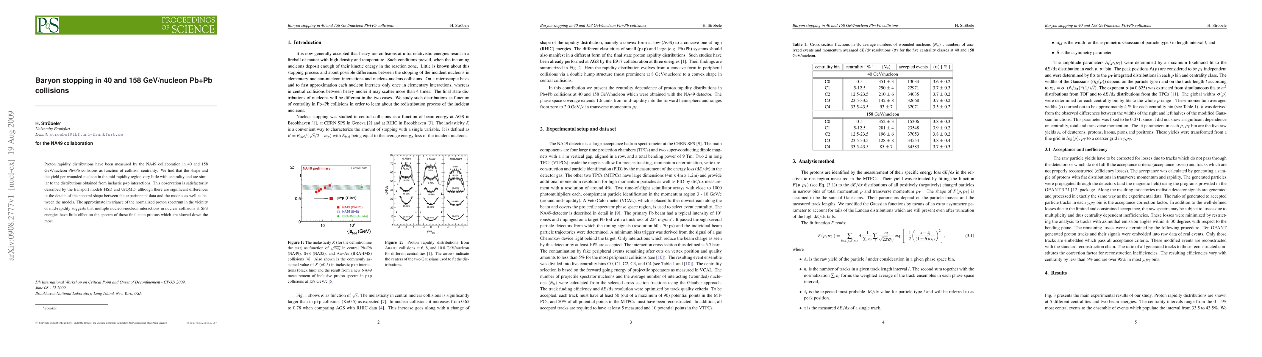 Researchers measured proton rapidity distributions in Pb+Pb collisions at 40 and 158 GeV/nucleon energies, finding that the shapes and yields of protons slowed down most remain similar across collision centrality levels. This suggests minimal impact of multiple nucleon-nucleon interactions on final-state proton spectra.