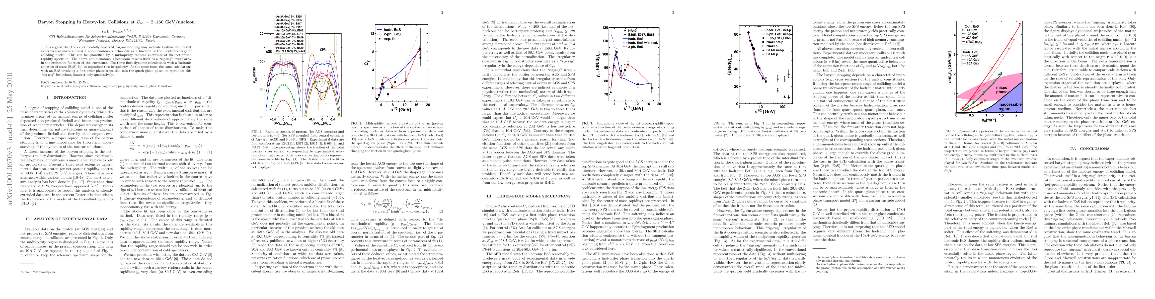 It is argued that the experimentally observed baryon stopping may indicate (within the present experimental uncertainties) a non-monotonous behaviour as a function of the incident energy of colliding nuclei. This can be quantified by a midrapidity reduced curvature of the net-proton rapidity spectrum. The above non-monotonous behaviour reveals itself as a "zig-zag" irregularity in the excitation function of this curvature. The three-fluid dynamic calculations with a hadronic equation of state (EoS) fail to reproduce this irregularity. At the same time, the same calculations with an EoS involving a first-order phase transition into the quark-gluon phase do reproduce this "zig-zag" behaviour, however only qualitatively.