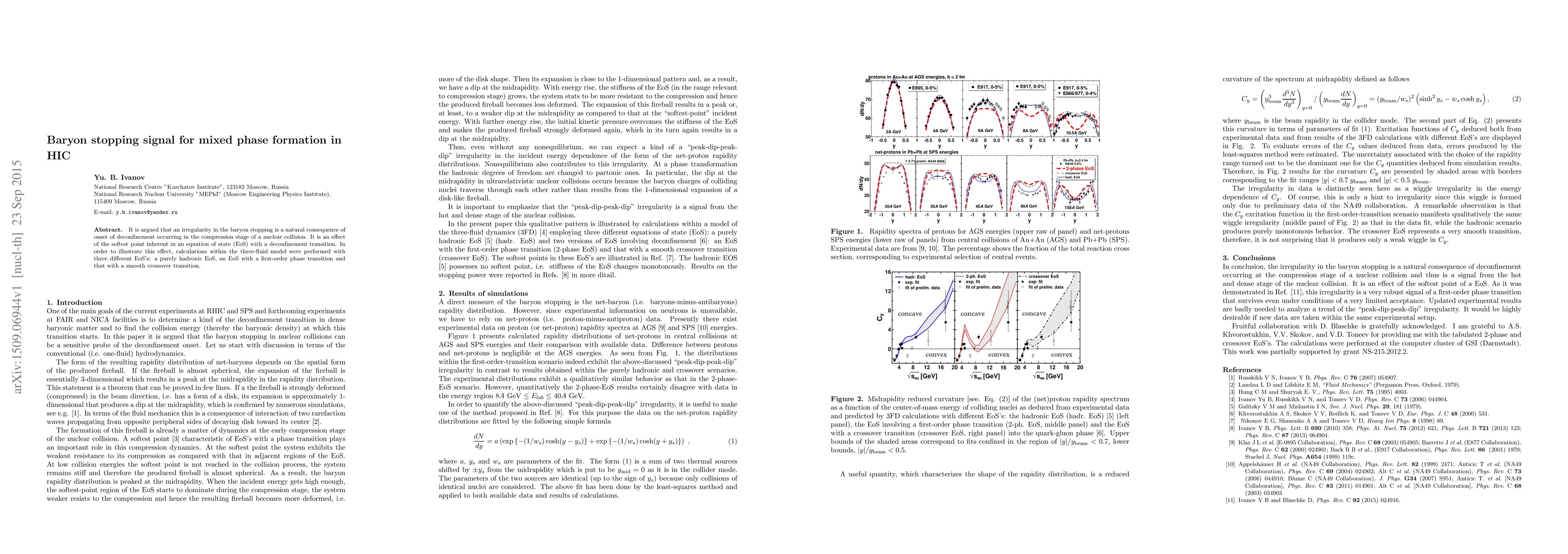 This paper argues that irregularities in baryon stopping signal the onset of deconfinement in heavy-ion collisions, particularly due to the softest point in an equation of state with a deconfinement transition. Calculations using a three-fluid model with different EoSs demonstrate this effect.