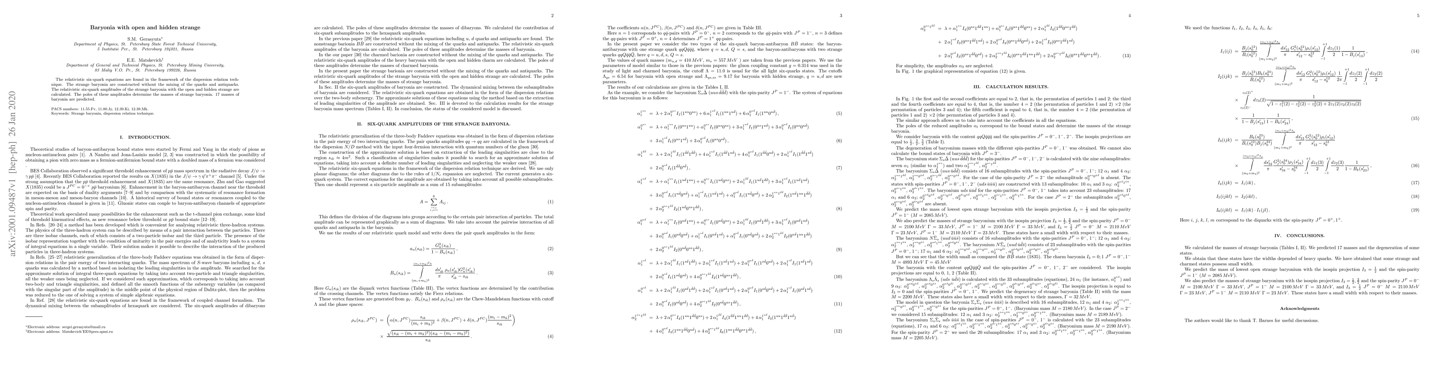 Development of a method to calculate the relativistic six-quark amplitudes for strange baryonia with open and hidden strange quarks, leading to 17 predicted masses.