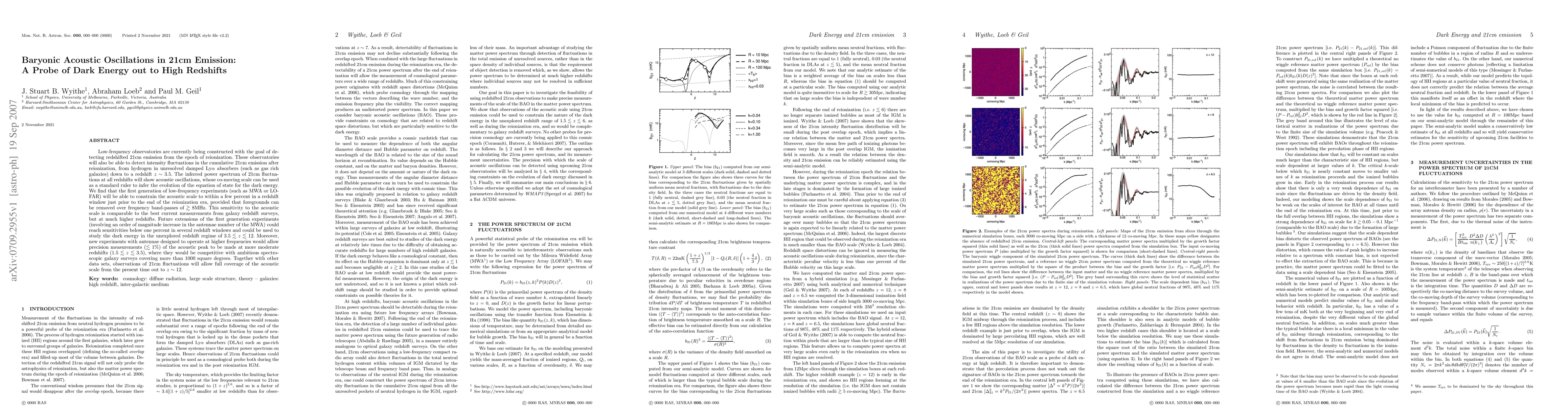 This paper explores the use of redshifted 21cm emission as a probe for dark energy, utilizing low-frequency observatories to detect intensity fluctuations in the cumulative 21cm signal. It suggests that these fluctuations reveal baryonic acoustic oscillations, which can serve as a standard ruler to study the evolution of dark energy across high redshifts, up to z~12.