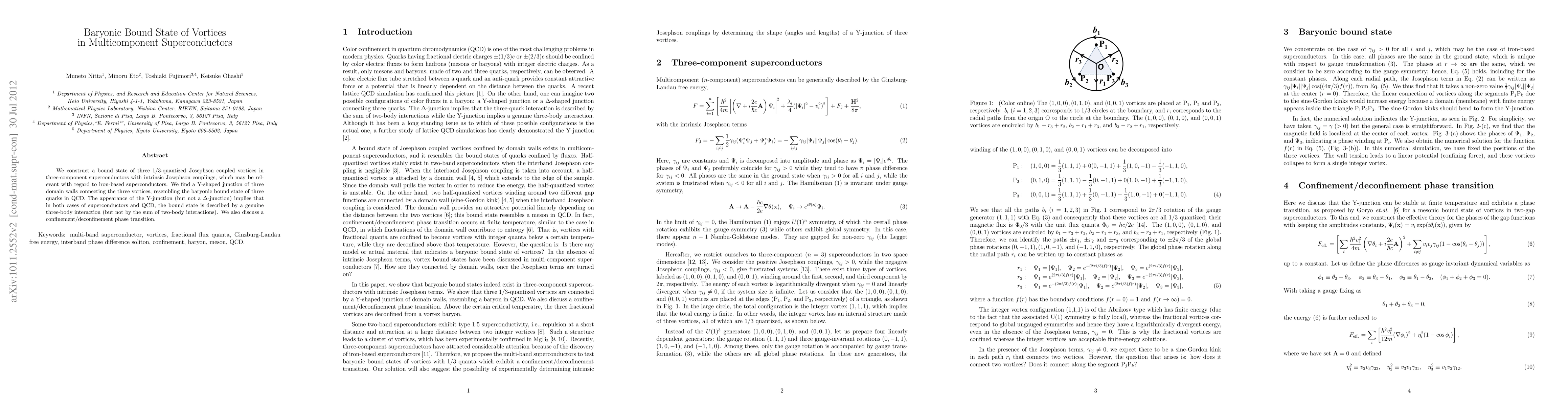 Researchers discovered a Y-shaped bound state of three vortices in multicomponent superconductors, similar to a baryonic bound state in QCD, indicating a genuine three-body interaction.