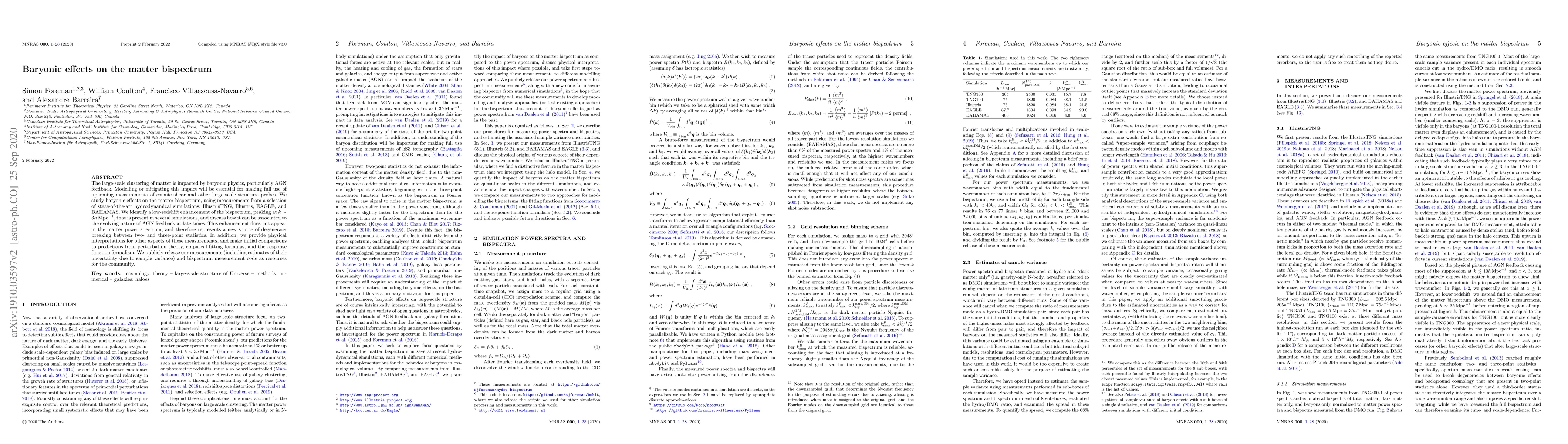 Researchers studied baryonic effects on the matter bispectrum using hydrodynamical simulations, finding a low-redshift enhancement that can help break degeneracies between two- and three-point statistics.