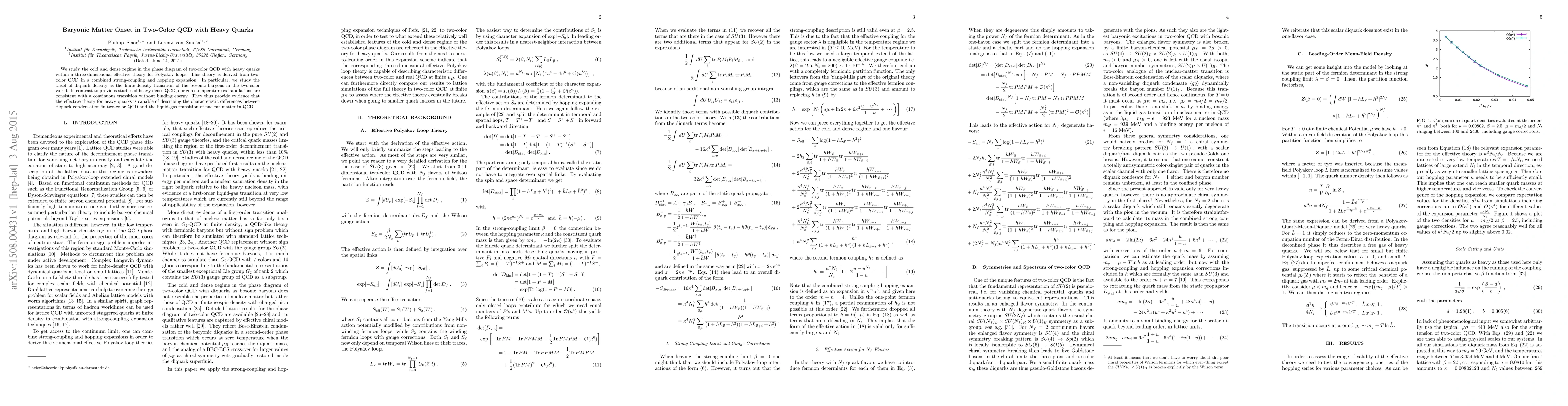 The paper presents a detailed analysis of diquark matter onset in two-color QCD using an effective theory of Polyakov-loop variables, derived through a combined strong-coupling and hopping expansion.