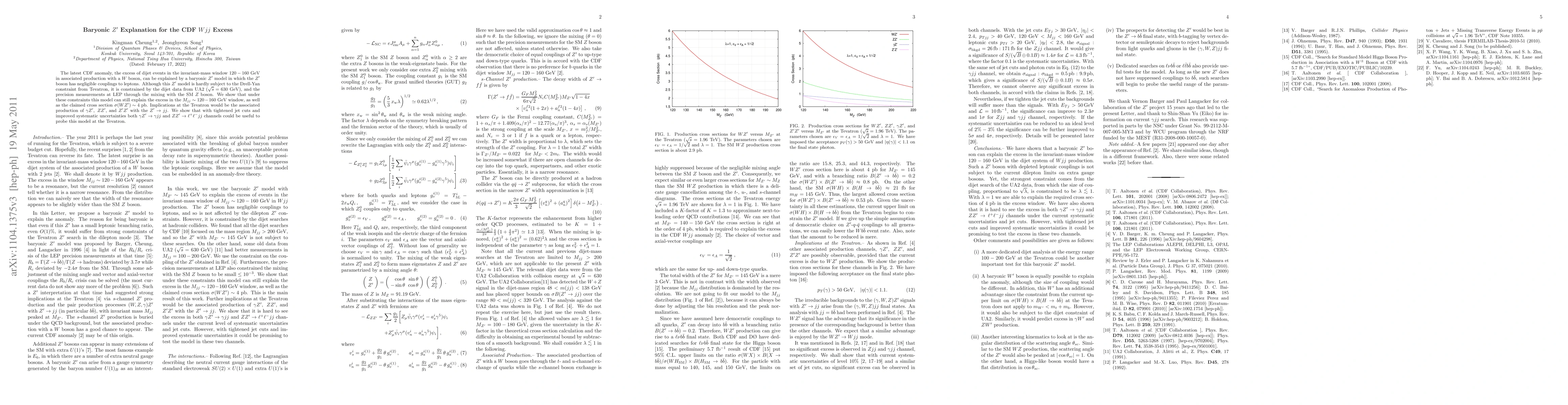 The research proposes a baryonic Z' model to explain the CDF Wjj excess, analyzing its constraints from UA2 dijet data and precision measurements at LEP.