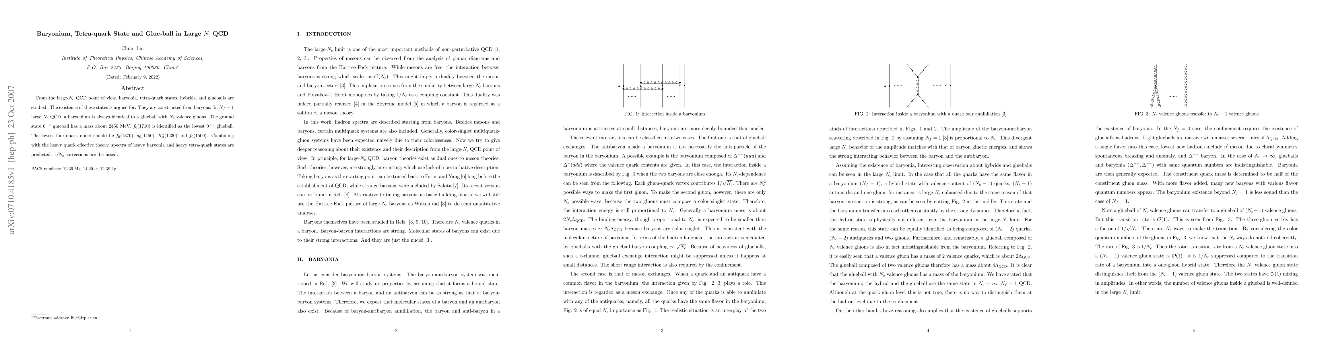 The paper extends the Fermi-Yang model by constructing hadron spectra from baryoniums using large-N_c QCD arguments.