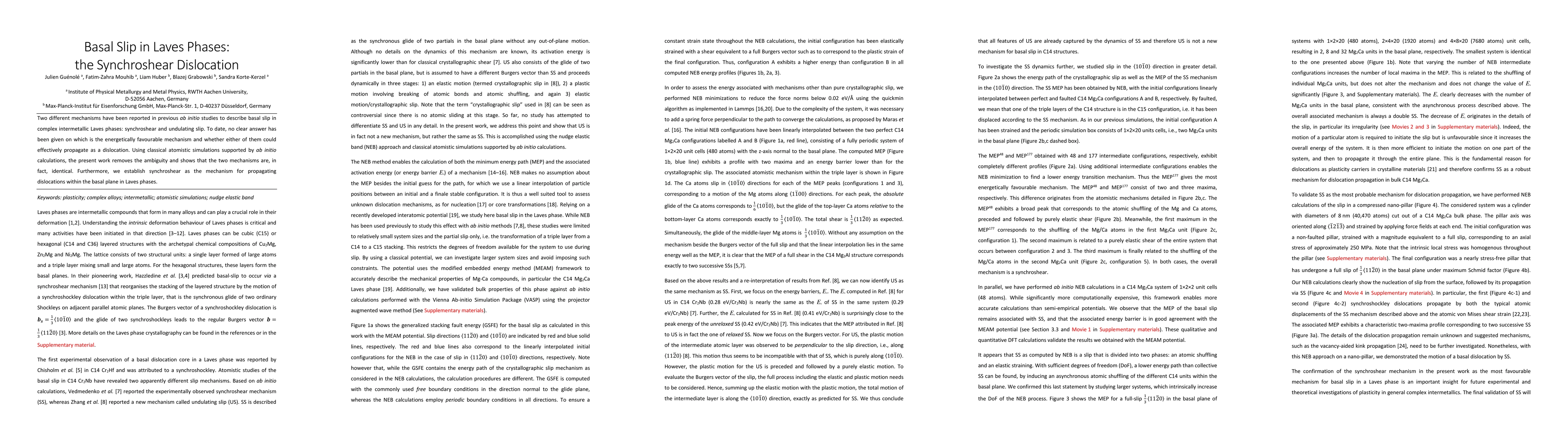 This study clarifies that both synchroshear and undulating slip mechanisms in Laves phases are, in fact, identical. It establishes synchroshear as the energetically favorable and effective mechanism for basal slip dislocation propagation.
