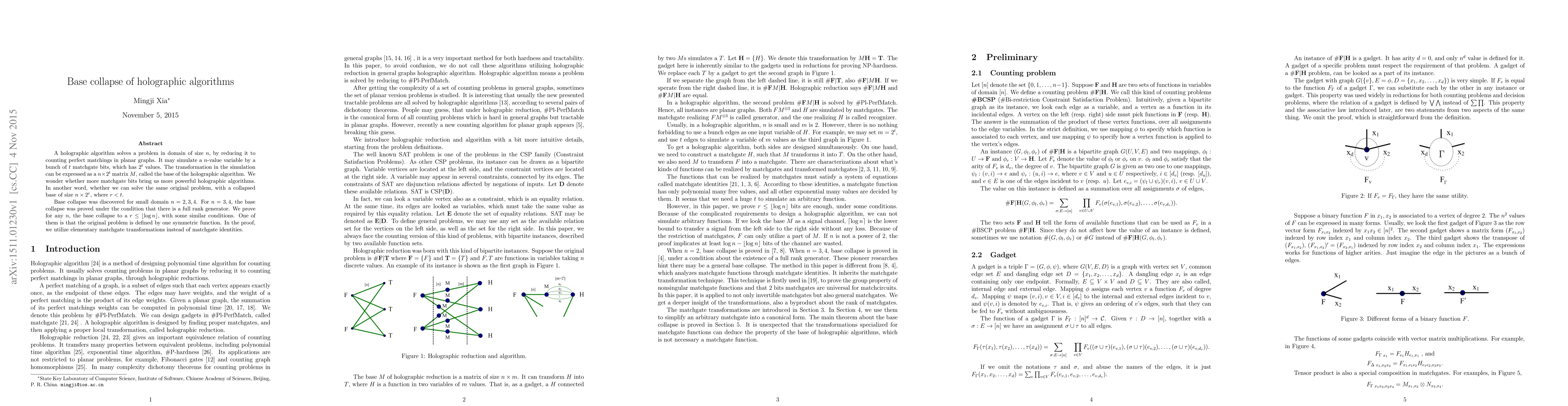$M$, called the base of the holographic algorithm. We wonder whether more