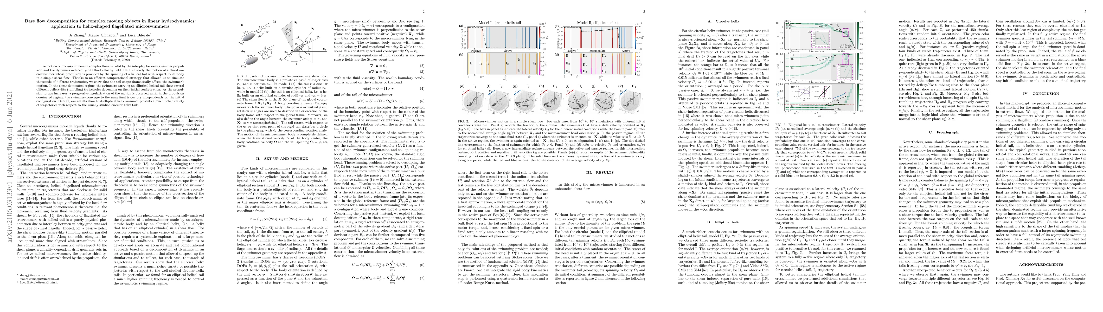 Researchers studied microswimmers with helical tails in simple shear flows, finding that tail shape affects motion significantly, leading to diverse trajectories depending on initial configuration, before converging to a single trajectory at higher propulsion torque.