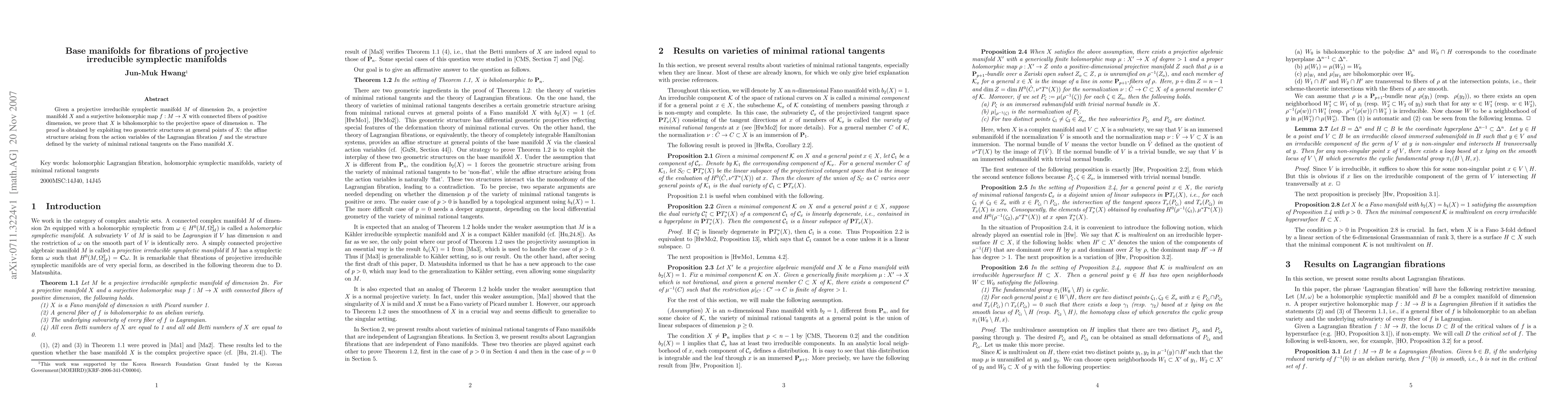 Summary: The paper demonstrates that a projective irreducible symplectic manifold $M$ mapped via a surjective holomorphic map to a projective manifold $X$ with positive-dimensional connected fibers implies $X$ is biholomorphic to projective space, using affine and minimal rational tangent structures.