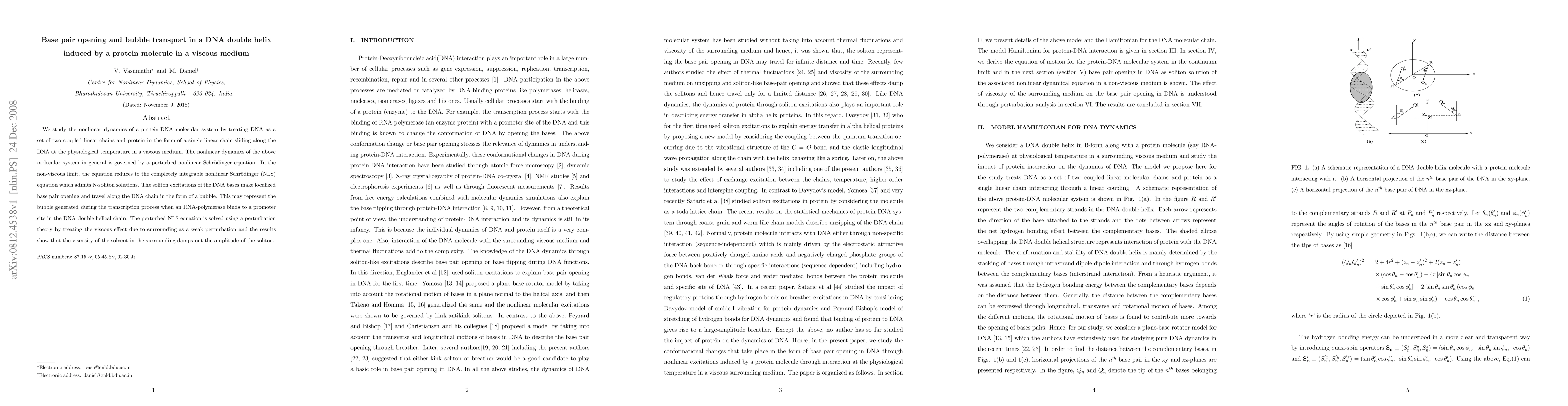 Researchers model protein-DNA interactions in a viscous medium, finding that viscosity dampens soliton amplitude, affecting localized base pair opening and bubble transport along the DNA.