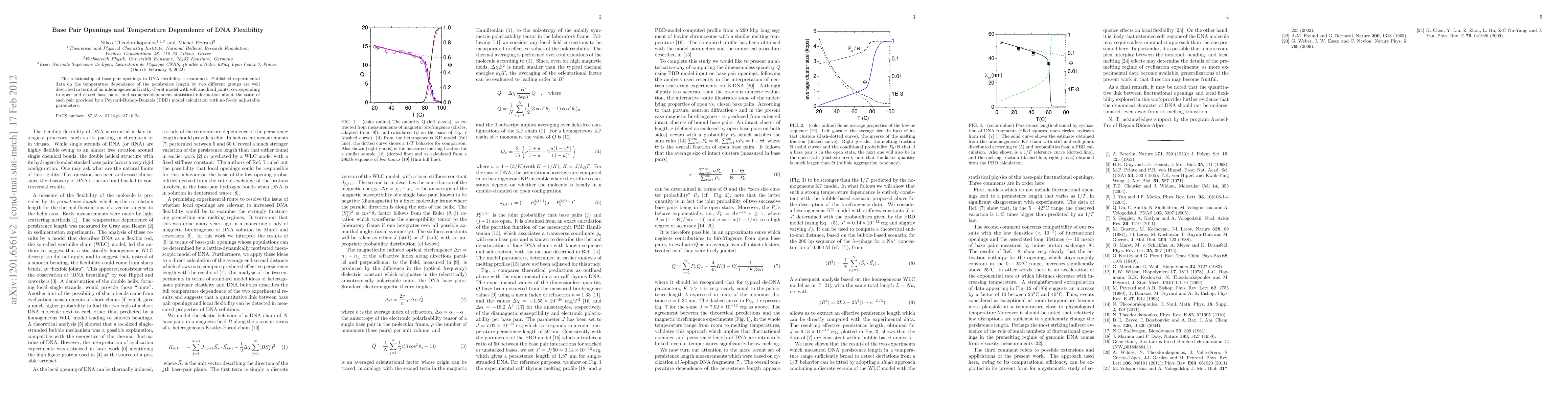 This paper investigates how base pair openings influence DNA flexibility, demonstrating that temperature-dependent persistence length data can be accurately described using an inhomogeneous Kratky-Porot model incorporating soft and hard joints, with sequence-specific information from a Peyrard-Bishop-Dauxois model.