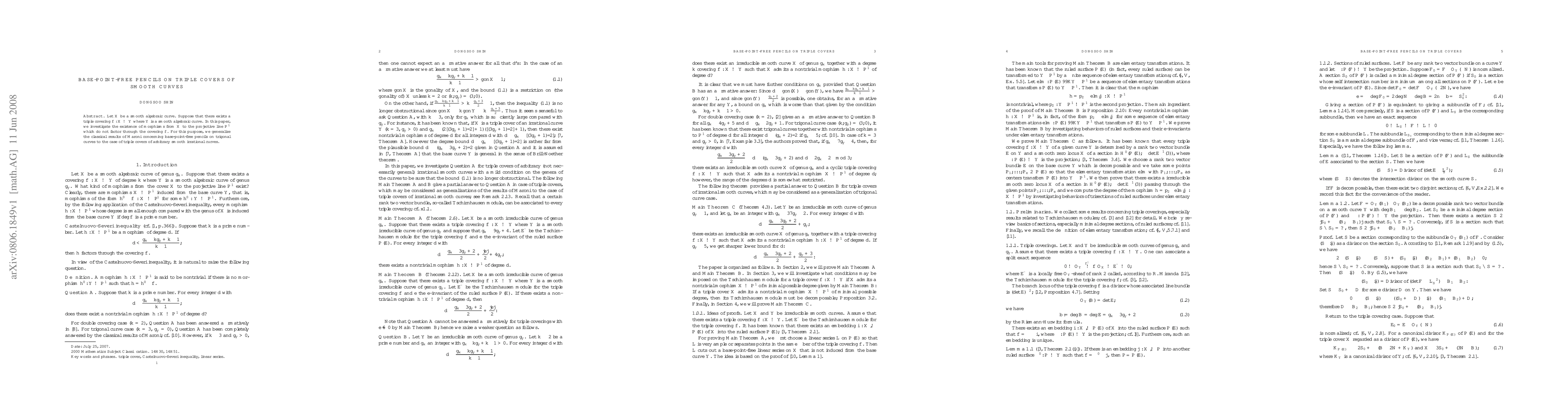 This paper explores the existence of morphisms from a triple cover of a smooth algebraic curve $X$ to the projective line $\mathbf{P}^1$ that do not factor through the covering map, generalizing Maroni's results on base-point-free pencils to triple covers of arbitrary smooth curves.