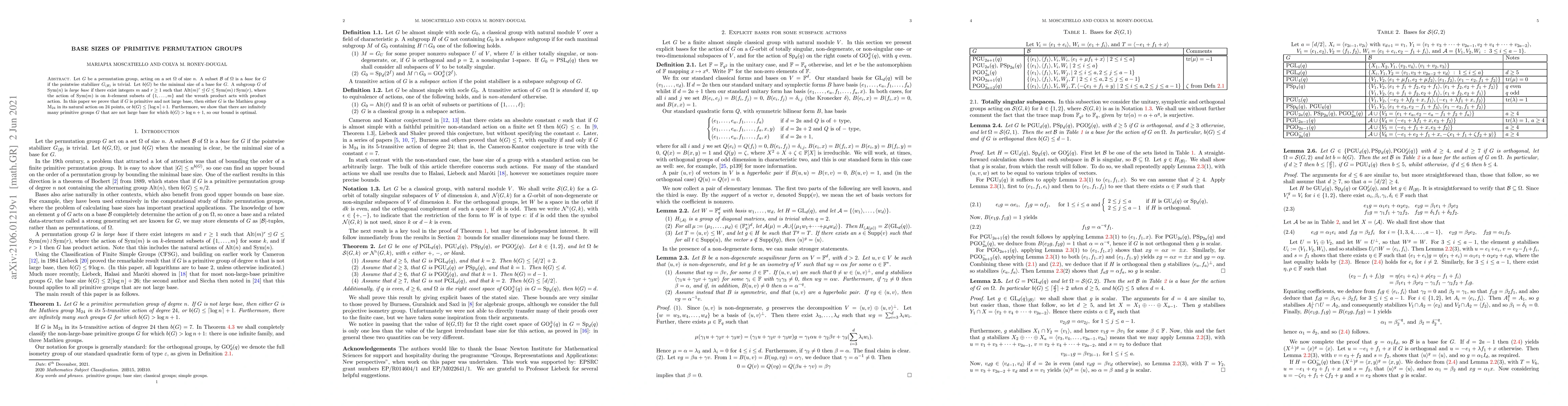This paper investigates the minimal base size, b(G), for primitive permutation groups G acting on a set Ω of size n. It proves that if G is not a large base group, then G is either M24 or b(G) ≤ ⌈log n⌉+1, and demonstrates the existence of infinitely many optimal primitive groups where b(G) exceeds log n + 1.
