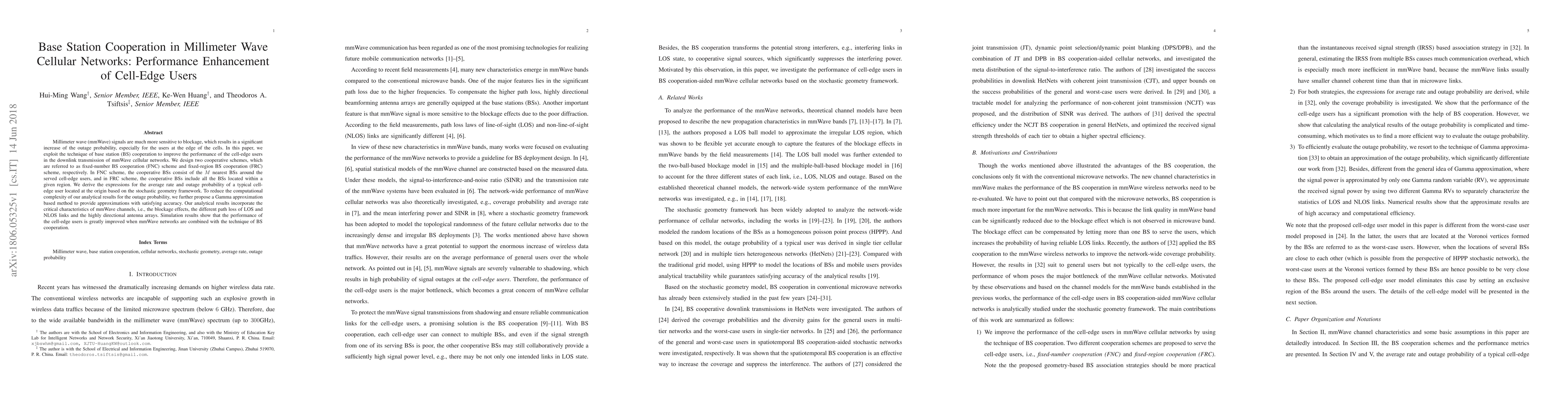 This paper investigates base station cooperation techniques to enhance the performance of cell-edge users in millimeter wave cellular networks, proposing two cooperative schemes: fixed-number BS cooperation and fixed-region BS cooperation. Analytical and simulation results demonstrate significant improvements in performance due to reduced outage probability and better average rate.