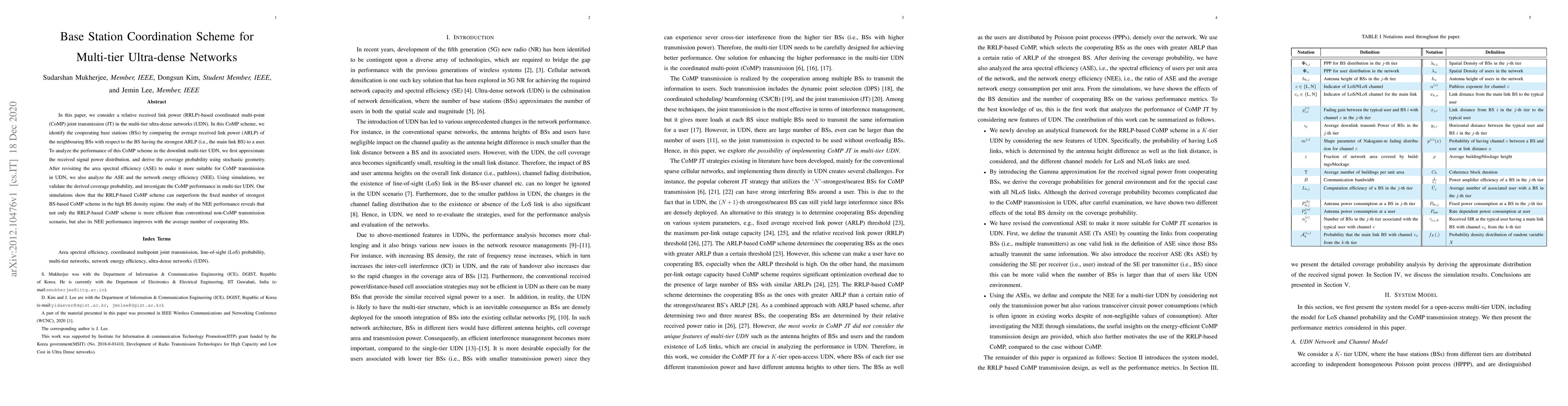 This paper proposes a relative received link power (RRLP)-based coordinated multi-point (CoMP) joint transmission scheme for multi-tier ultra-dense networks (UDN). Simulations show that the RRLP-based CoMP scheme outperforms fixed strongest BS-based CoMP in high base station density, and enhances network energy efficiency as the number of cooperating BSs increases.