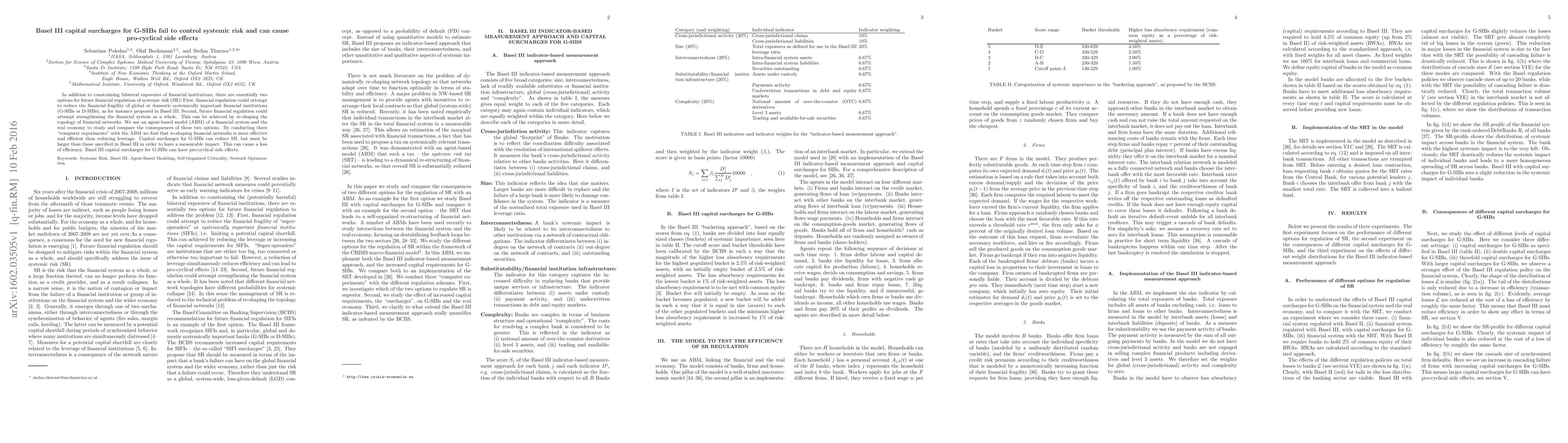 In addition to constraining bilateral exposures of financial institutions, there are essentially two options for future financial regulation of systemic risk (SR): First, financial regulation could attempt to reduce the financial fragility of global or domestic systemically important financial institutions (G-SIBs or D-SIBs), as for instance proposed in Basel III. Second, future financial regulation could attempt strengthening the financial system as a whole. This can be achieved by re-shaping the topology of financial networks. We use an agent-based model (ABM) of a financial system and the real economy to study and compare the consequences of these two options. By conducting three "computer experiments" with the ABM we find that re-shaping financial networks is more effective and efficient than reducing leverage. Capital surcharges for G-SIBs can reduce SR, but must be larger than those specified in Basel III in order to have a measurable impact. This can cause a loss of efficiency. Basel III capital surcharges for G-SIBs can have pro-cyclical side effects.