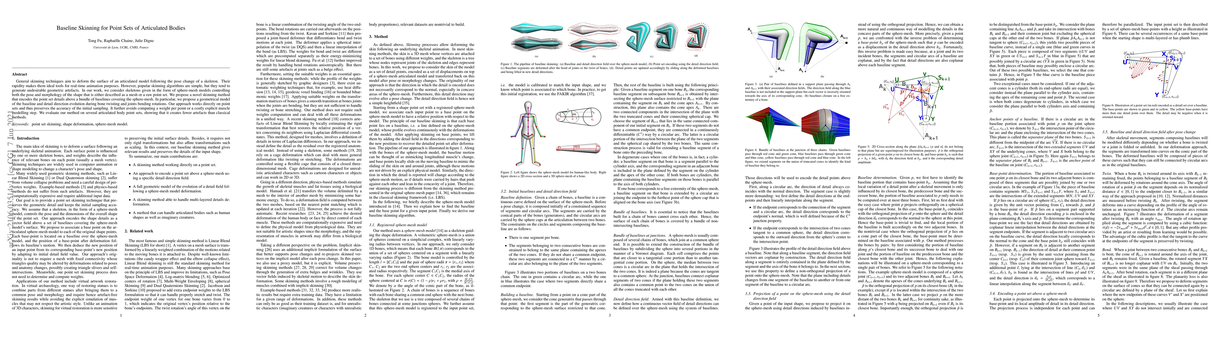 General skinning techniques aim to deform the surface of an articulated model following the pose change of a skeleton. Their rapidity makes them ideal tools for real-time animation purposes. However, popular skinning algorithms are simple, but they tend to generate undesirable geometric artefacts. In our work, we consider skeletons given in the form of sphere-mesh models controlling both the pose and morphology of the shape that is either described as a mesh or a raw point set. We propose a novel skinning method that encodes the point set details above a bundle of baselines covering the sphere-mesh. In particular, we propose a geometrical model of the baseline and detail direction evolution during bone twisting and joints bending rotations. Our approach works directly on point sets and thus preserves the accuracy of the initial sampling. It further avoids computing a weight per point or a costly explicit muscle modelling step. We evaluate our method on several articulated body point sets, showing that it creates fewer artefacts than classical methods.
