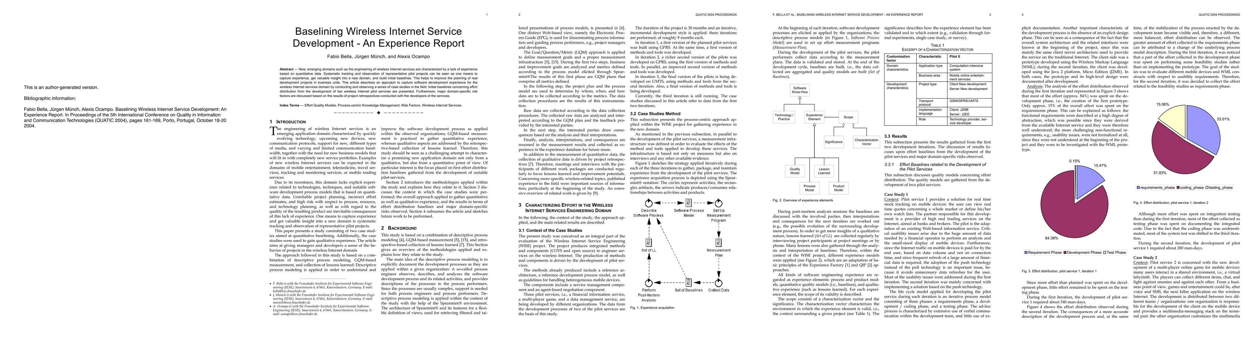 New, emerging domains such as the engineering of wireless Internet services are characterized by a lack of experience based on quantitative data. Systematic tracking and observation of representative pilot projects can be seen as one means to capture experience, get valuable insight into a new domain, and build initial baselines. This helps to improve the planning of real development projects in business units. This article describes an approach to capture software development experience for the wireless Internet services domain by conducting and observing a series of case studies in the field. Initial baselines concerning effort distribution from the development of two wireless Internet pilot services are presented. Furthermore, major domain-specific risk factors are discussed based on the results of project retrospectives conducted with the developers of the services.