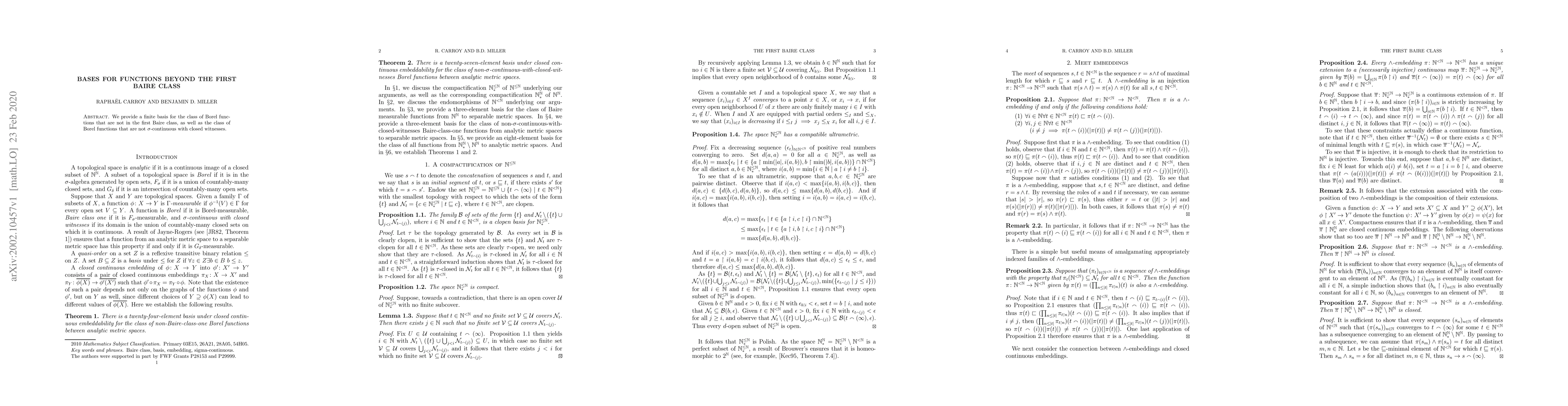 Summary: This paper establishes a finite basis for Borel functions that are beyond the first Baire class and also for those that fail to be $\sigma$-continuous with specific closed sets serving as witnesses.