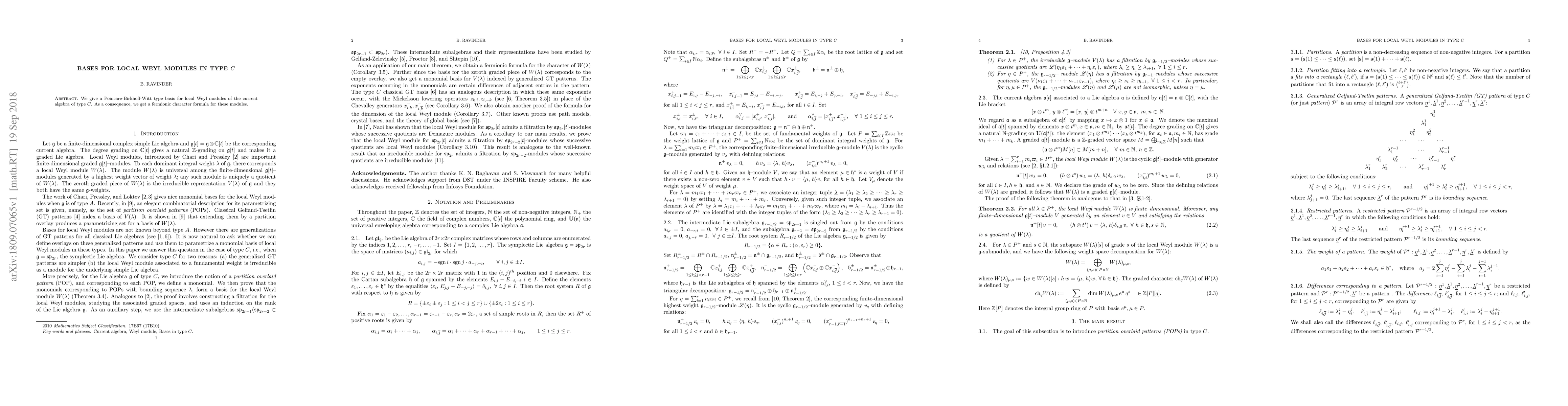 Researchers have found a Poincare-Birkhoff-Witt basis for local Weyl modules of the current algebra of type $C$, enabling a fermionic character formula.