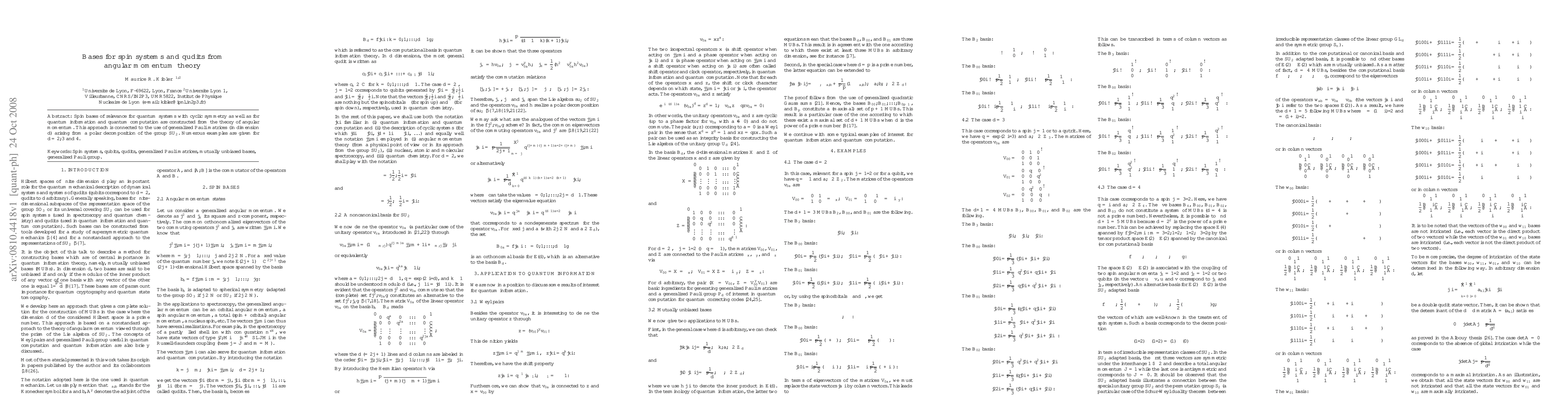 Spin bases of relevance for quantum systems with cyclic symmetry as well as for quantum information and quantum computation are constructed from the theory of angular momentum. This approach is connected to the use of generalized Pauli matrices (in dimension d) arising from a polar decomposition of the group SU(2). Numerous examples are given for d=2, 3 and 4.