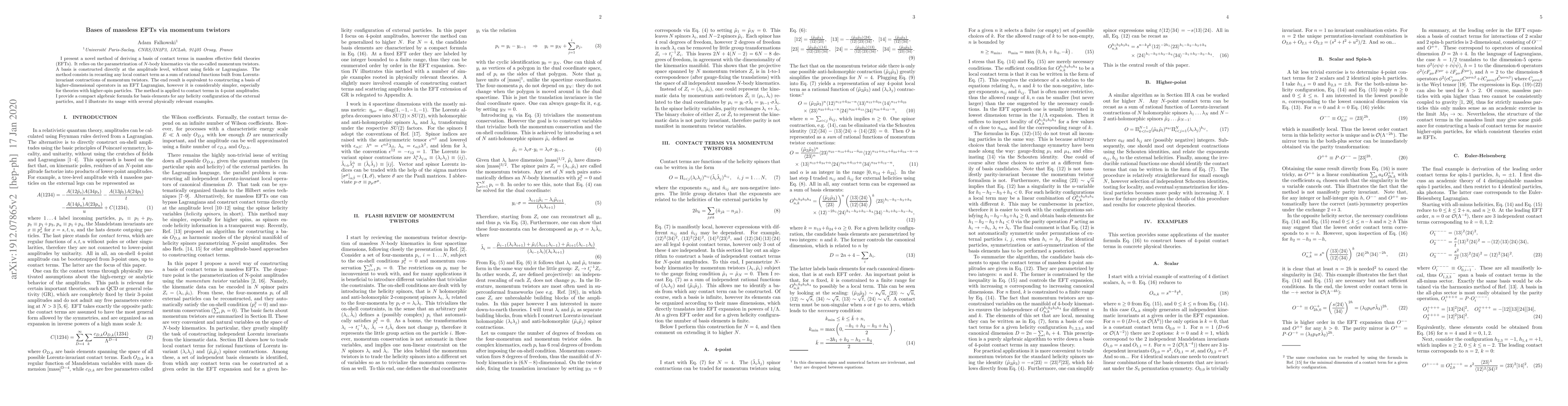 I present a novel method of deriving a basis of contact terms in massless effective field theories (EFTs). It relies on the parametrization of $N$-body kinematics via the so-called momentum twistors. A basis is constructed directly at the amplitude level, without using fields or Lagrangians. The method consists in recasting any local contact term as a sum of rational functions built from Lorentz-invariant contractions of momentum twistors. The end result is equivalent to constructing a basis of higher-dimensional operators in an EFT Lagrangian, however it is considerably simpler, especially for theories with higher-spin particles. The method is applied to contact terms in 4-point amplitudes. I provide a compact algebraic formula for basis elements for any helicity configuration of the external particles, and I illustrate its usage with several physically relevant examples.