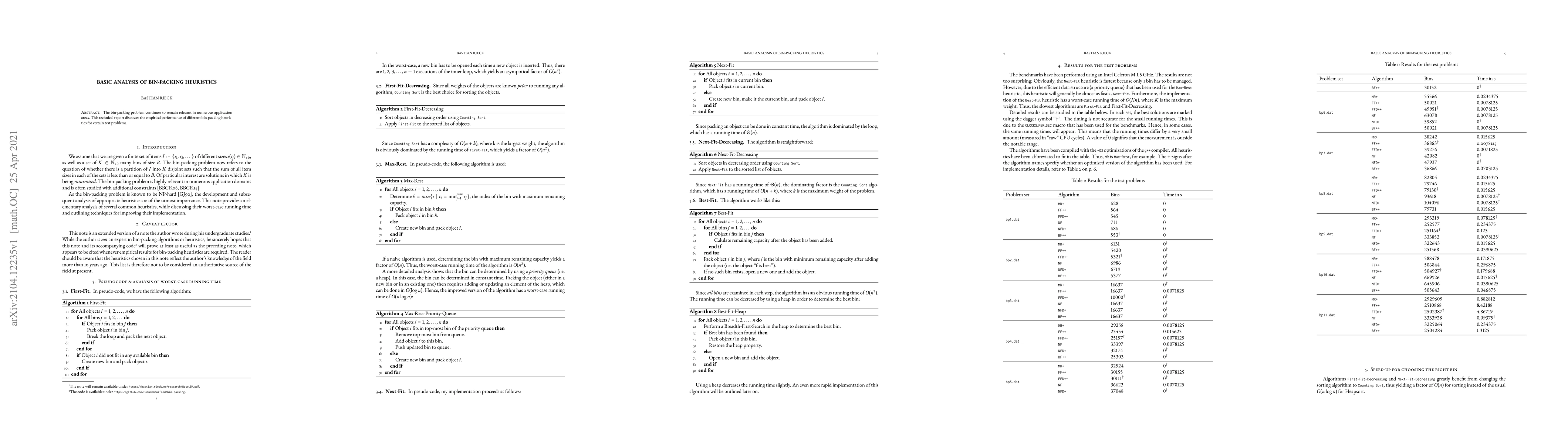 Summary: This technical report evaluates the empirical performance of various bin-packing heuristics through specific test problems, highlighting their effectiveness in solving the bin-packing problem in practical applications.