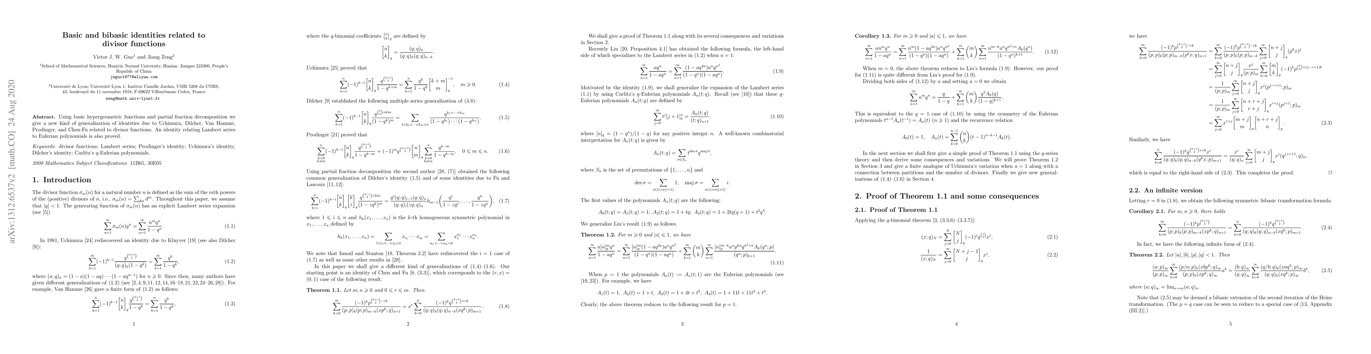 This paper generalizes identities related to divisor functions using basic hypergeometric functions and partial fraction decomposition, extending work by Uchimura, Dilcher, Van Hamme, Prodinger, and Chen-Fu. It also establishes a new identity linking Lambert series to Eulerian polynomials.