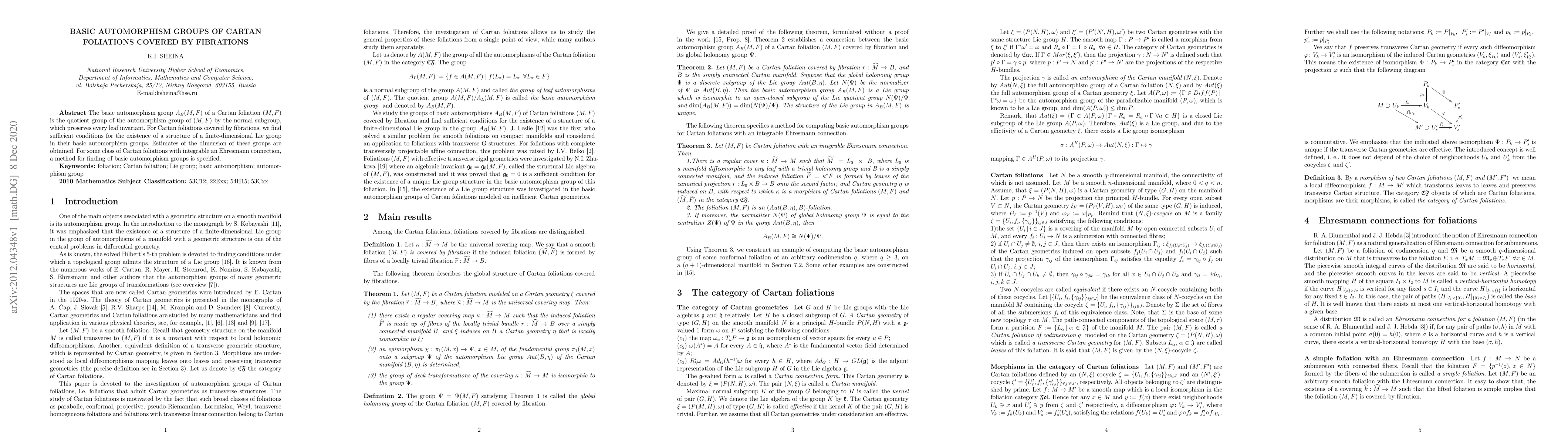 This paper explores the basic automorphism group ${A}_B(M,F)$ of Cartan foliations $(M, F)$ and finds sufficient conditions for these groups to form finite-dimensional Lie groups. It also provides methods to estimate their dimensions and outlines a procedure for specific classes of foliations with integrable Ehresmann connections.