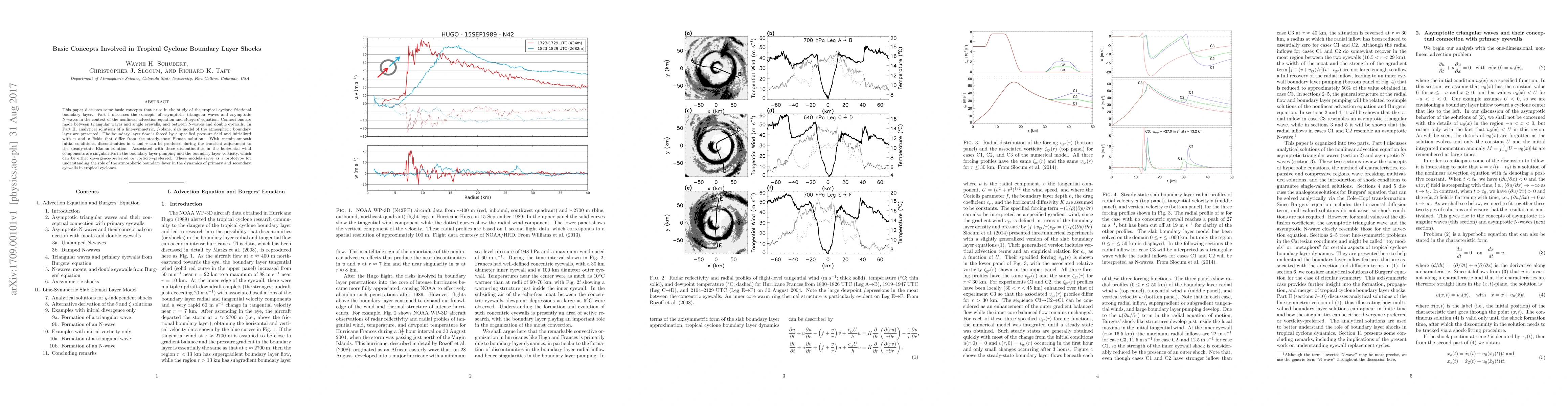 This paper discusses some basic concepts that arise in the study of the tropical cyclone frictional boundary layer. Part I discusses the concepts of asymptotic triangular waves and asymptotic N-waves in the context of the nonlinear advection equation and Burgers' equation. Connections are made between triangular waves and single eyewalls, and between N-waves and double eyewalls. In Part II, analytical solutions of a line-symmetric, $f$-plane, slab model of the atmospheric boundary layer are presented. The boundary layer flow is forced by a specified pressure field and initialized with $u$ and $v$ fields that differ from the steady-state Ekman solution. With certain smooth initial conditions, discontinuities in $u$ and $v$ can be produced during the transient adjustment to the steady-state Ekman solution. Associated with these discontinuities in the horizontal wind components are singularities in the boundary layer pumping and the boundary layer vorticity, which can be either divergence-preferred or vorticity-preferred. These models serve as a prototype for understanding the role of the atmospheric boundary layer in the dynamics of primary and secondary eyewalls in tropical cyclones