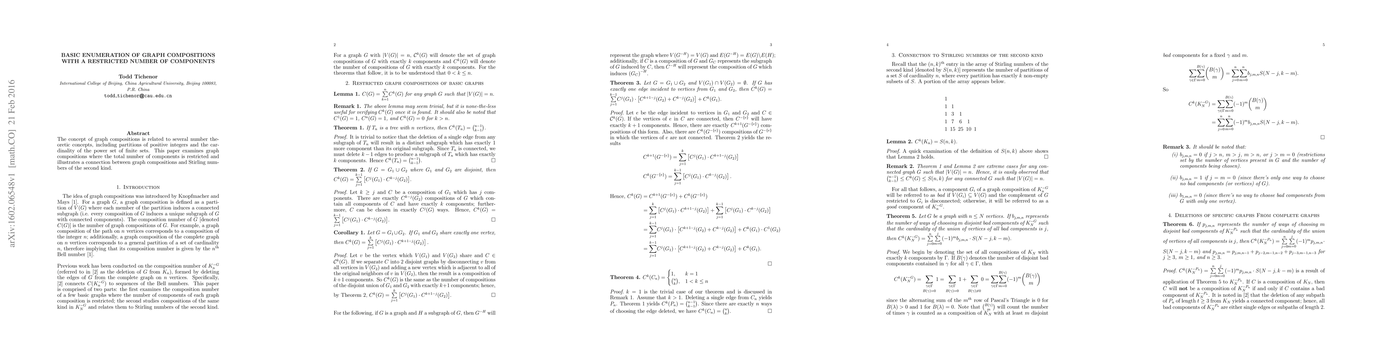 The research examines graph compositions with a restricted number of components, connecting them to Stirling numbers of the second kind and exploring their enumeration using combinatorial techniques.