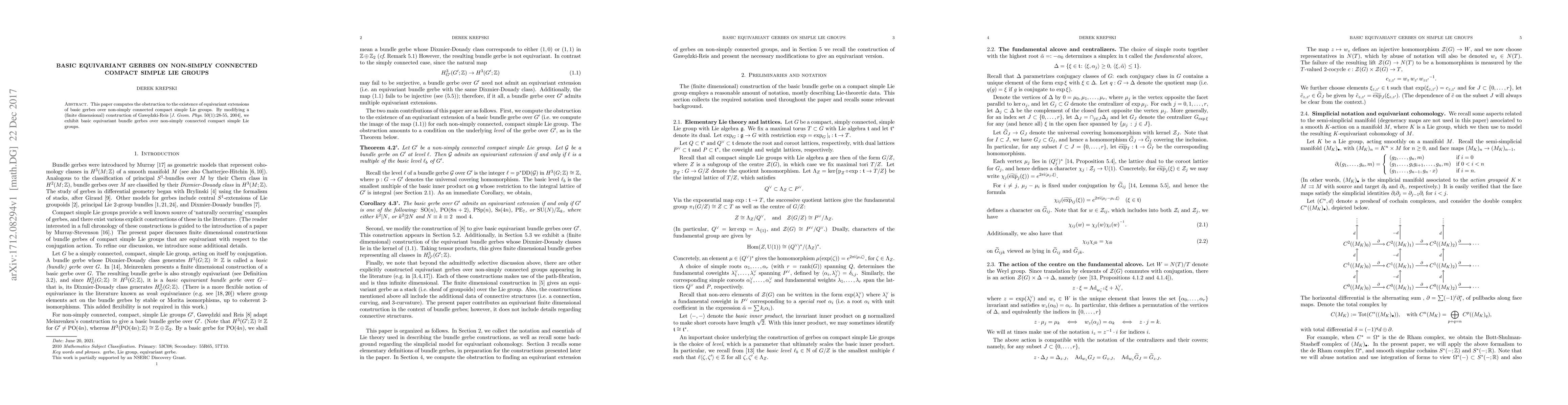 This paper investigates the obstructions to extending basic gerbes to equivariant ones over non-simply connected compact simple Lie groups, presenting modified finite-dimensional constructions to achieve equivariant bundle gerbes.