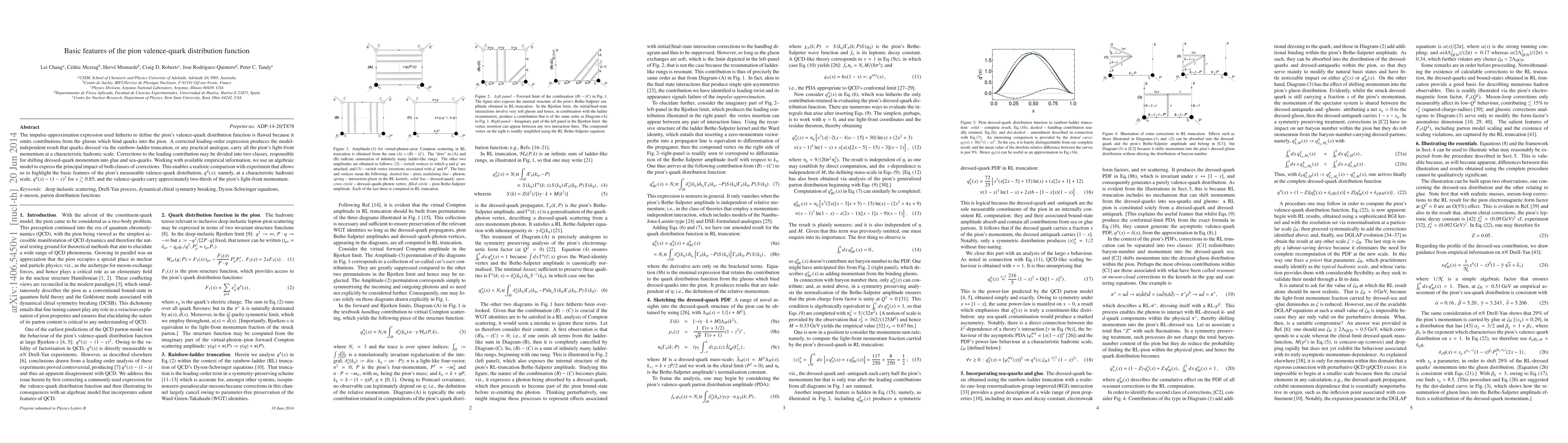 This paper corrects the pion valence-quark distribution function by including gluon contributions, showing that quarks carry most of the pion's momentum. It highlights that at a hadronic scale, the valence-quark distribution follows $q^\pi(x) \sim (1-x)^2$ for $x\gtrsim 0.85$.