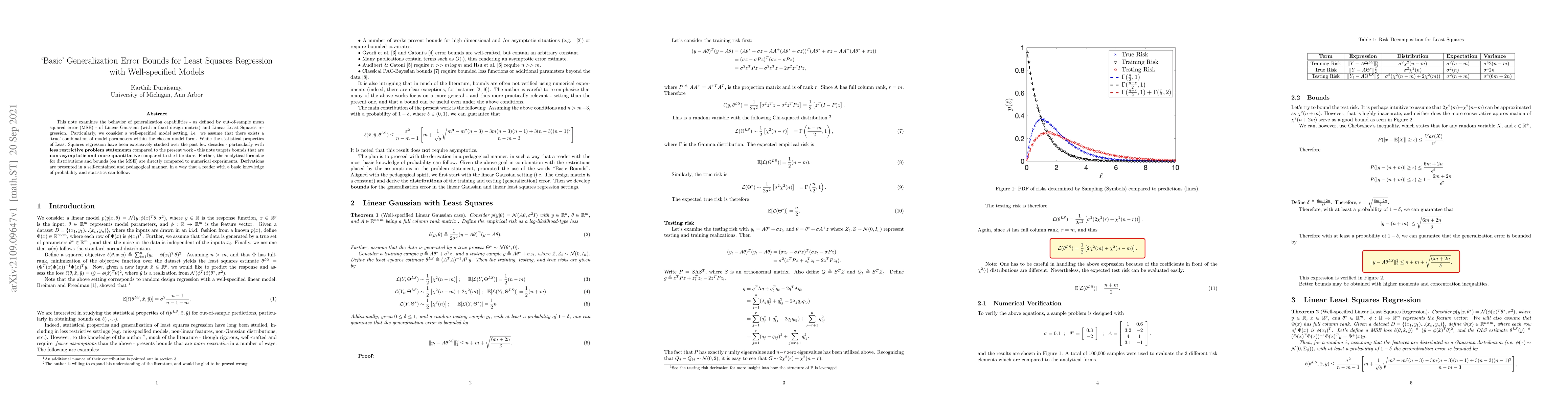 This paper provides non-asymptotic, quantitative bounds for the generalization error of least squares regression in well-specified linear Gaussian models, comparing analytical results with numerical experiments for validation. The focus is on clear, pedagogical derivations accessible to readers with basic probability and statistics knowledge.