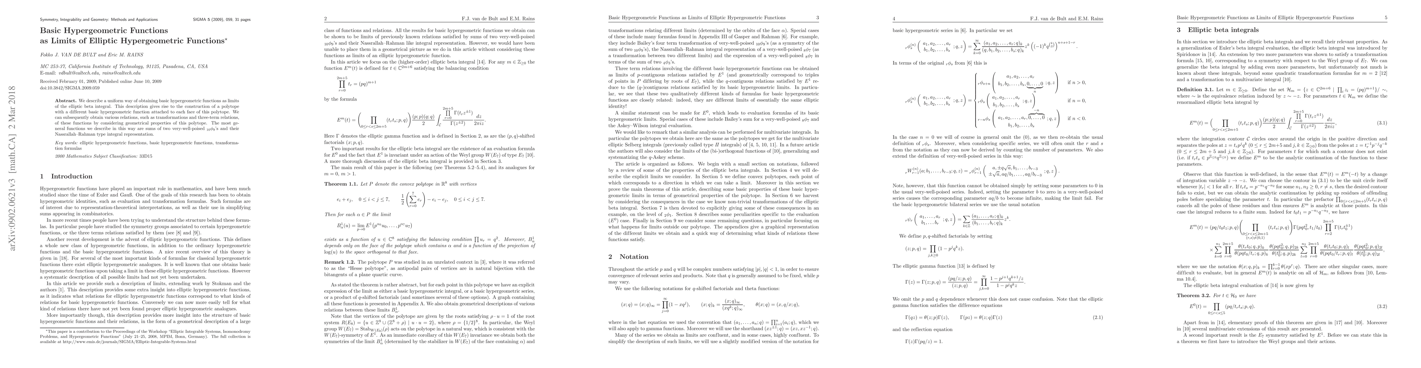 This paper presents a method for deriving basic hypergeometric functions as limits of elliptic hypergeometric functions via the elliptic beta integral, constructing a polytope where each face is associated with a distinct basic hypergeometric function, and deriving transformations and three-term relations through geometric properties of this polytope.