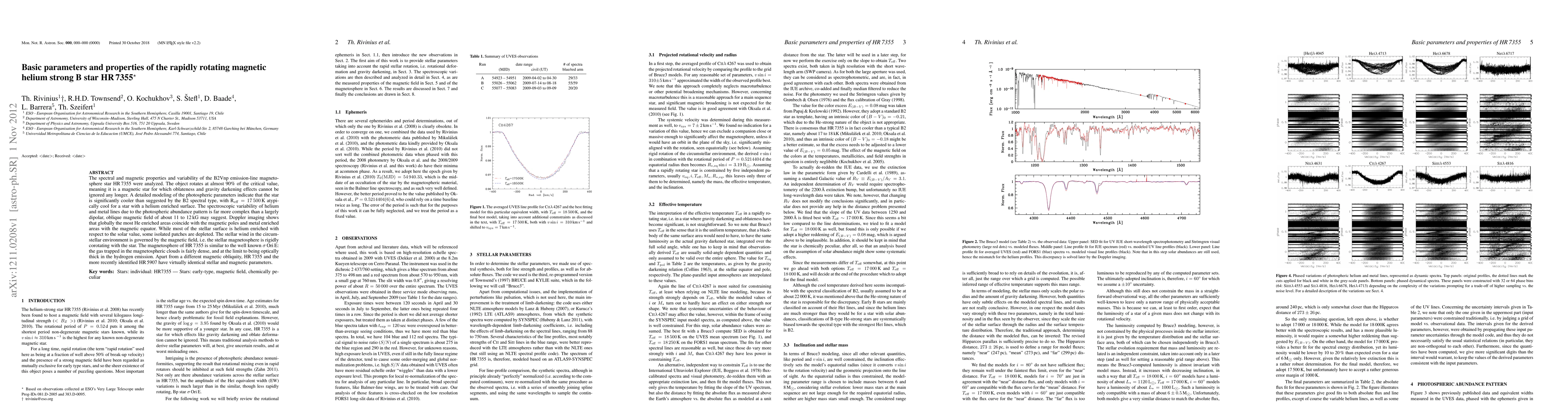 The star HR7355 is found to have a significantly cooler temperature than expected for its spectral type, with a helium-enriched surface and a magnetosphere that varies in density across the stellar surface. Its magnetic field is similar to another known star, sigma Ori E.