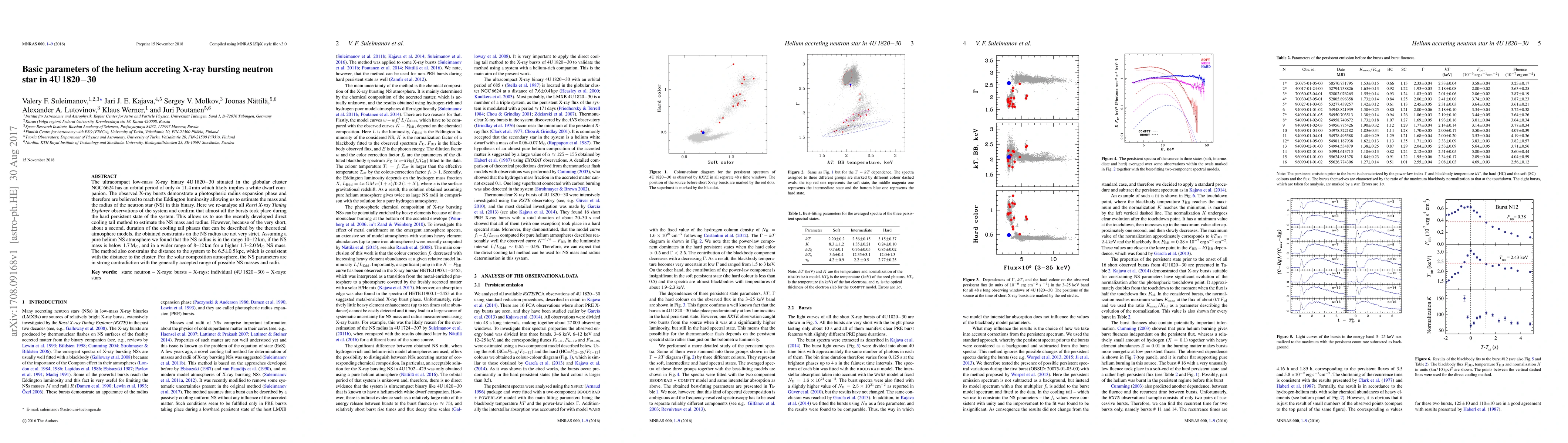 The ultracompact low-mass X-ray binary 4U 1820-30 situated in the globular cluster NGC 6624 has an orbital period of only $\approx$11.4 min which likely implies a white dwarf companion. The observed X-ray bursts demonstrate a photospheric radius expansion phase and therefore are believed to reach the Eddington luminosity allowing us to estimate the mass and the radius of the neutron star (NS) in this binary. Here we re-analyse all Rossi X-ray Timing Explorer observations of the system and confirm that almost all the bursts took place during the hard persistent state of the system. This allows us to use the recently developed direct cooling tail method to estimate the NS mass and radius. However, because of the very short, about a second, duration of the cooling tail phases that can be described by the theoretical atmosphere models, the obtained constraints on the NS radius are not very strict. Assuming a pure helium NS atmosphere we found that the NS radius is in the range 10-12 km, if the NS mass is below 1.7 $M_\odot$, and in a wider range of 8-12 km for a higher 1.7-2.0 $M_\odot$ NS mass. The method also constrains the distance to the system to be 6.5$\pm$0.5 kpc, which is consistent with the distance to the cluster. For the solar composition atmosphere, the NS parameters are in strong contradiction with the generally accepted range of possible NS masses and radii.
