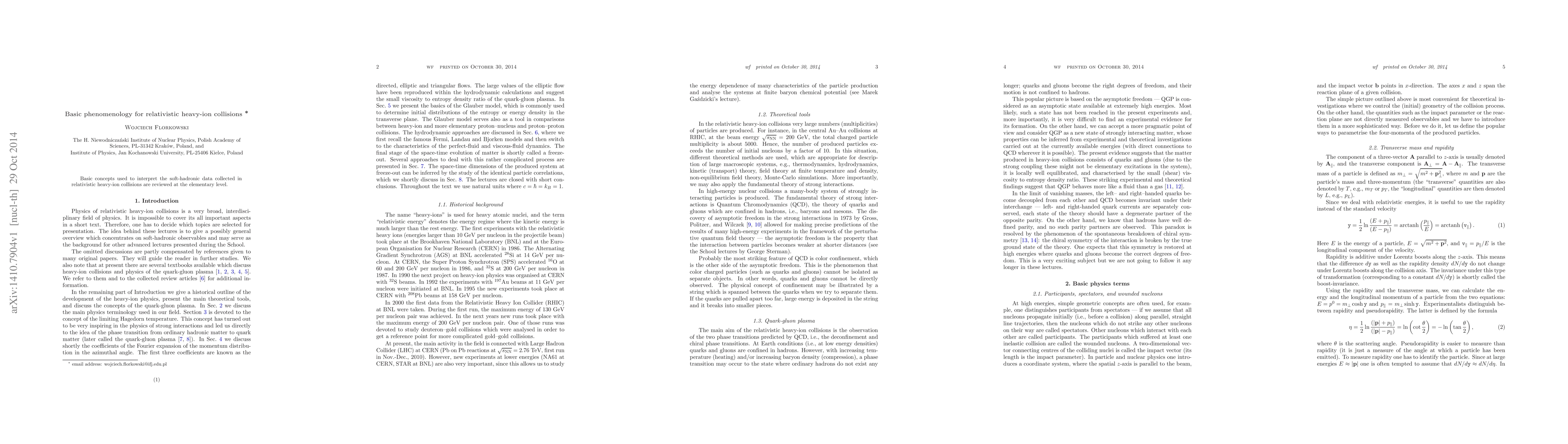 Two-line summary: This paper reviews fundamental phenomenological concepts applied to interpret soft-hadronic data from relativistic heavy-ion collisions, aiming to provide an elementary understanding of the underlying physics. It focuses on key principles and models used to analyze the behavior of particles produced in such high-energy interactions.