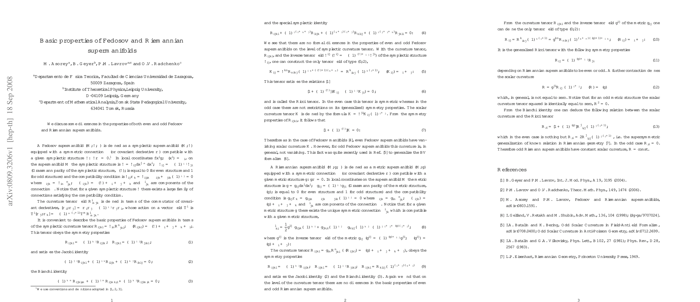 This paper examines the fundamental characteristics and contrasts between even and odd Fedosov and Riemannian supermanifolds, focusing on their distinct properties.