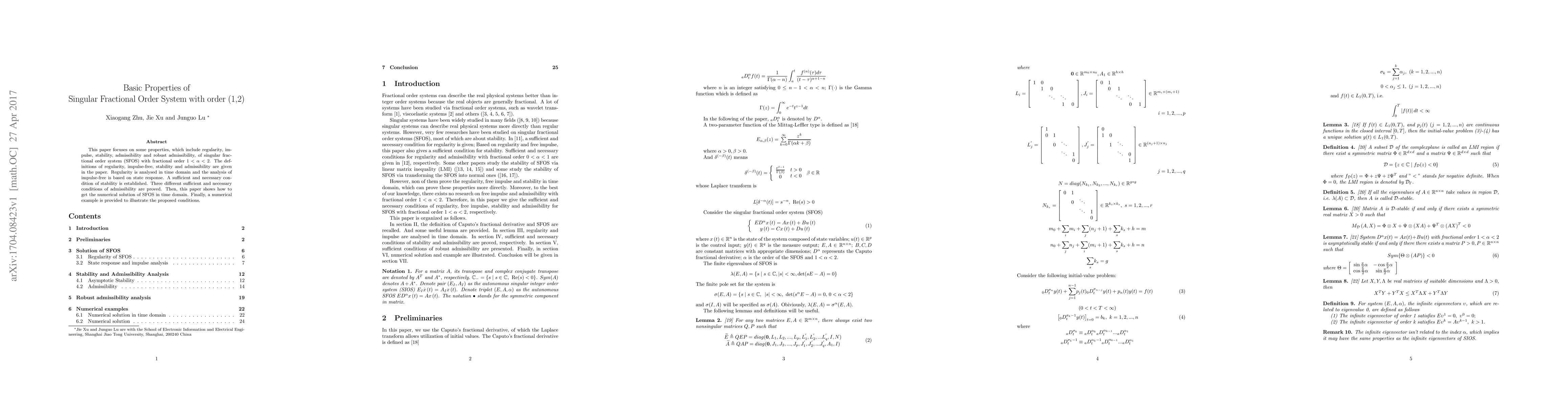 This paper focuses on some properties, which include regularity, impulse, stability, admissibility and robust admissibility, of singular fractional order system (SFOS) with fractional order $1<\alpha<2$. The finitions of regularity, impulse-free, stability and admissibility are given in the paper. Regularity is analysed in time domain and the analysis of impulse-free is based on state response. A sufficient and necessary condition of stability is established. Three different sufficient and necessary conditions of admissibility are proved. Then, this paper shows how to get the numerical solution of SFOS in time domain. Finally, a numerical example is provided to illustrate the proposed conditions.