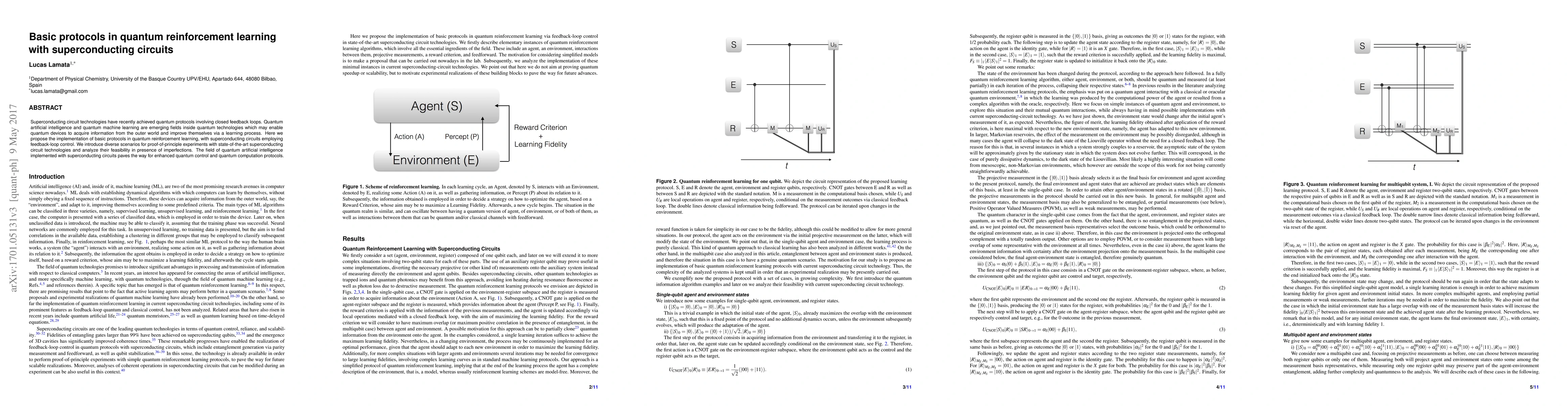 This paper proposes basic quantum reinforcement learning protocols using superconducting circuits with feedback-loop control, exploring potential proof-of-principle experiments and analyzing their feasibility despite technological imperfections. The work aims to advance quantum artificial intelligence and quantum computation through enhanced quantum control.